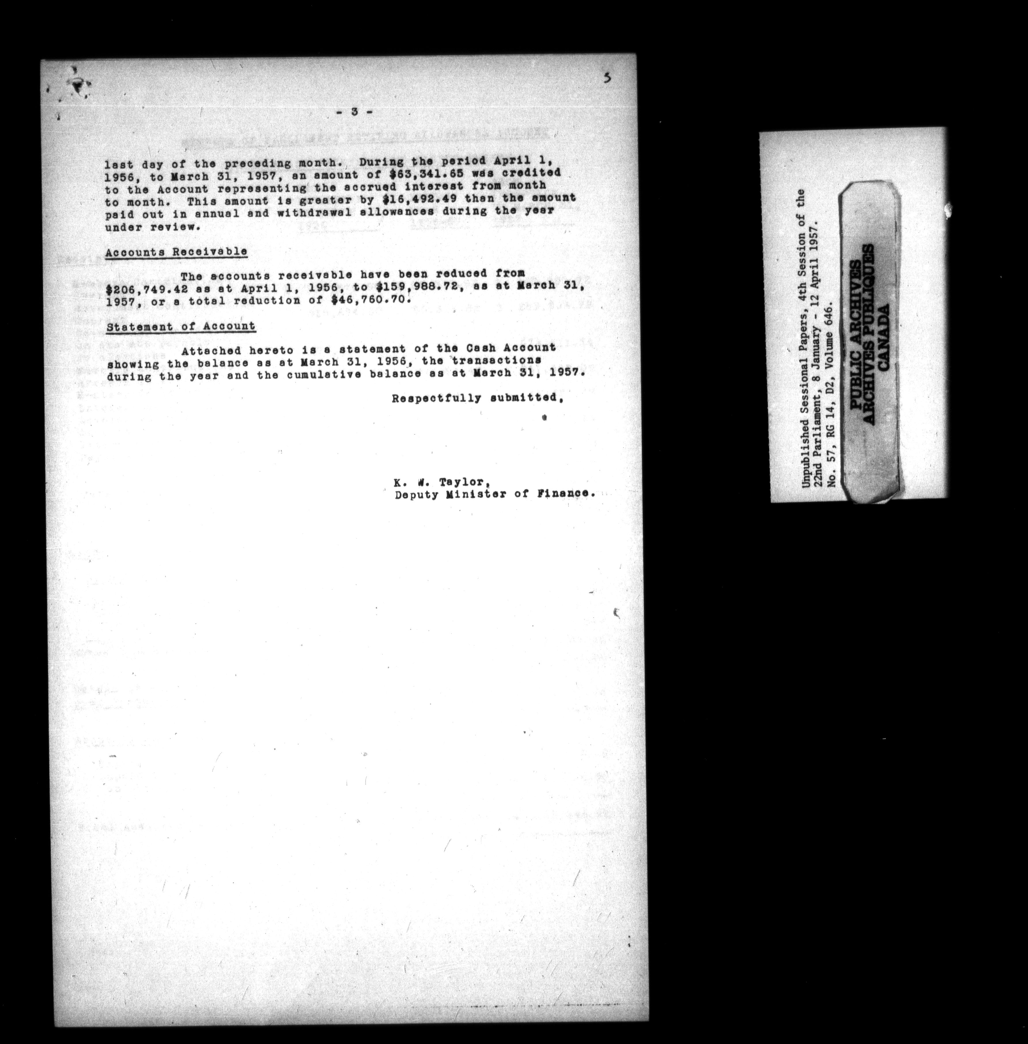 Unpublished sessional papers, 5th Session, 22nd Parliament - 3600