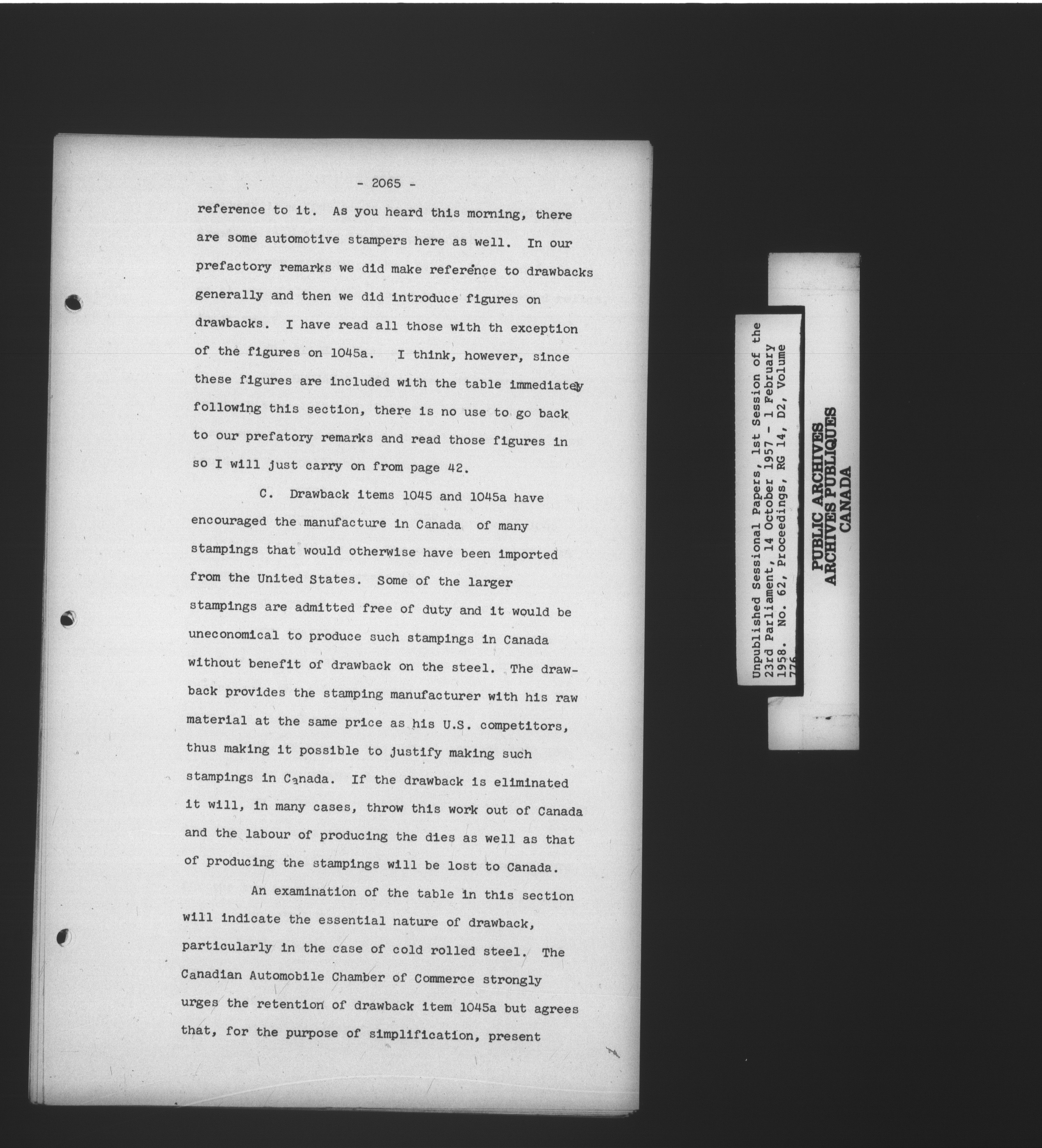 Unpublished sessional papers, 1st Session, 23rd Parliament - 3603
