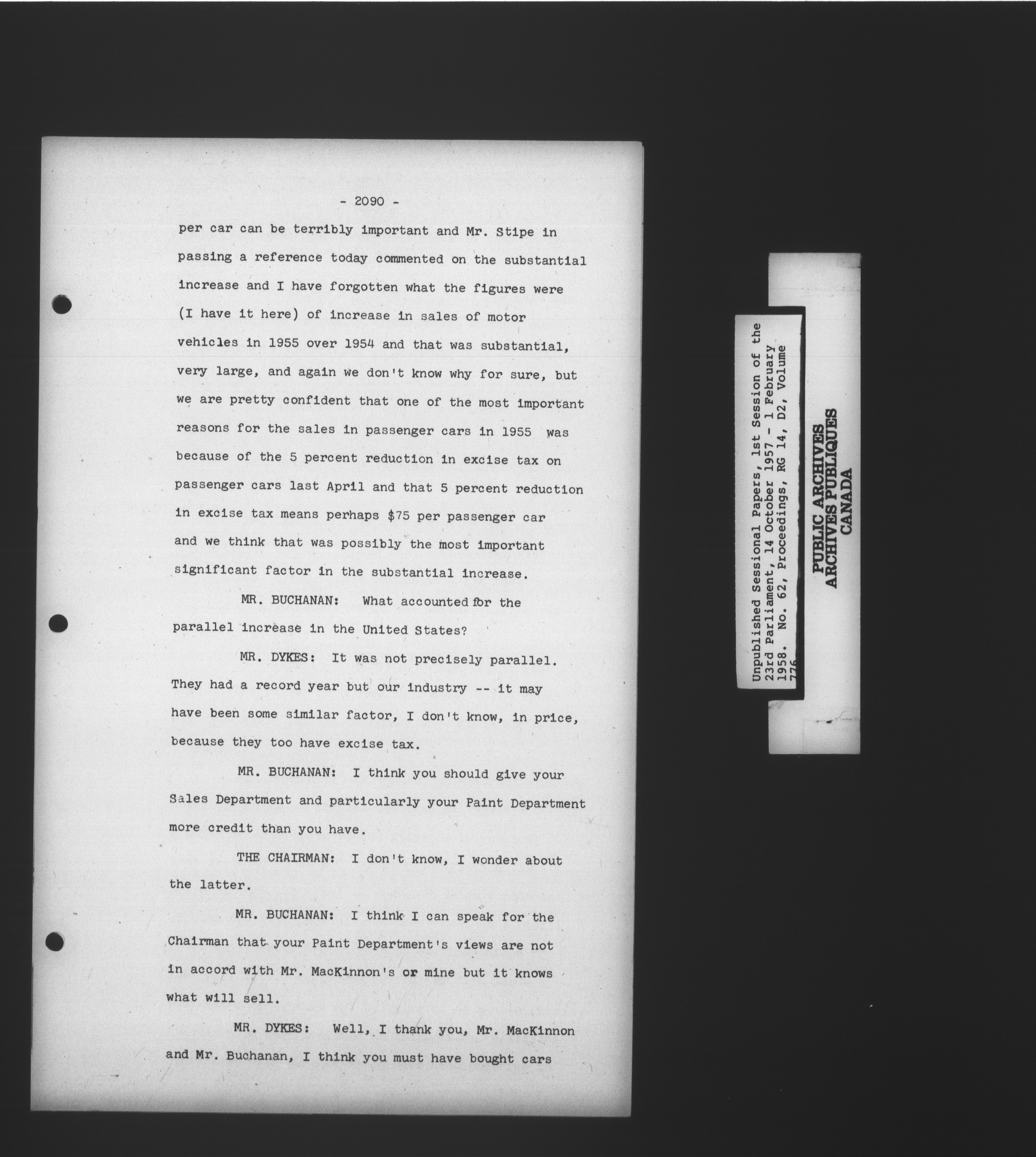 Unpublished sessional papers, 1st Session, 23rd Parliament - 3603