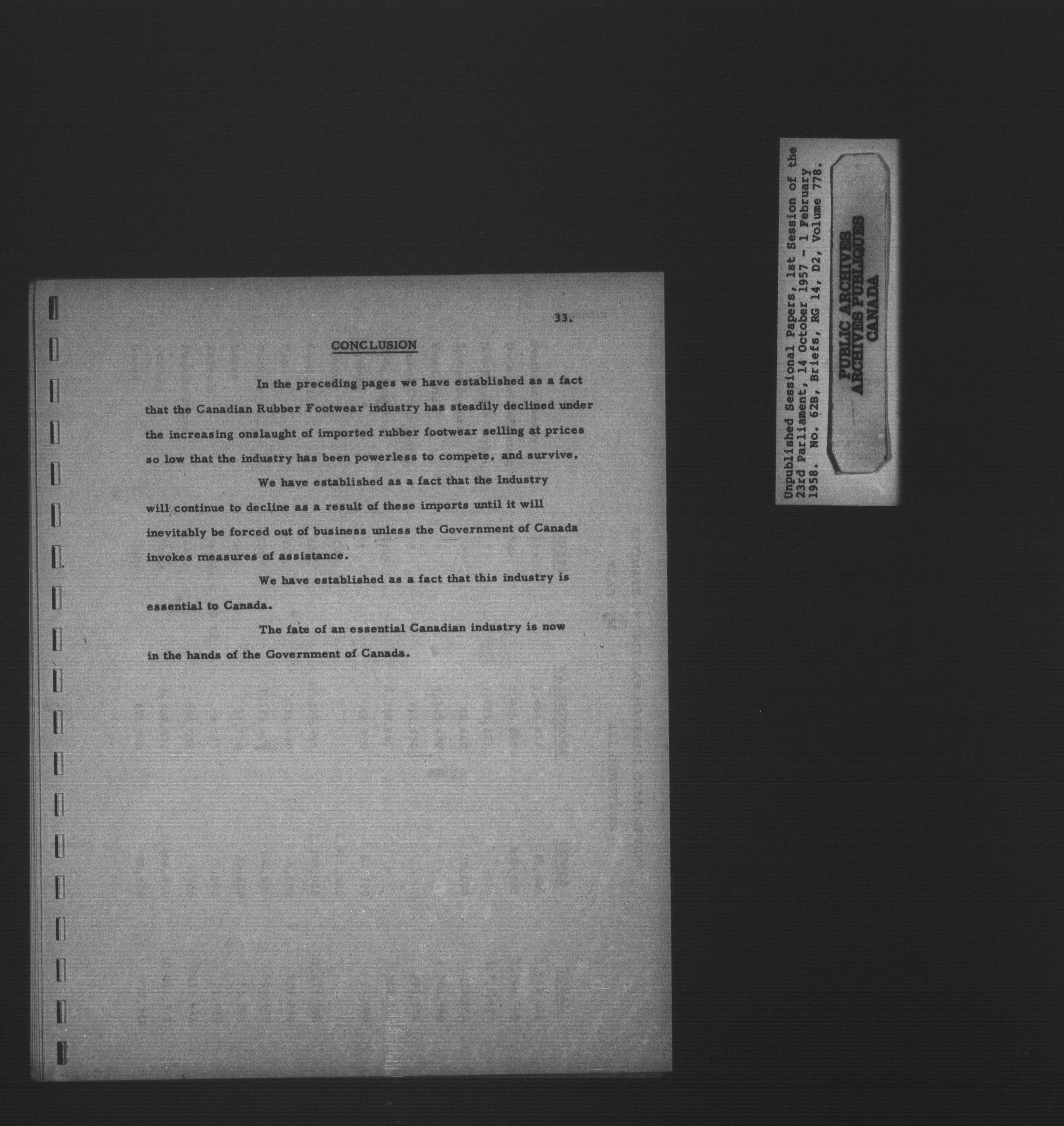 Unpublished sessional papers, 1st Session, 23rd Parliament - 3604
