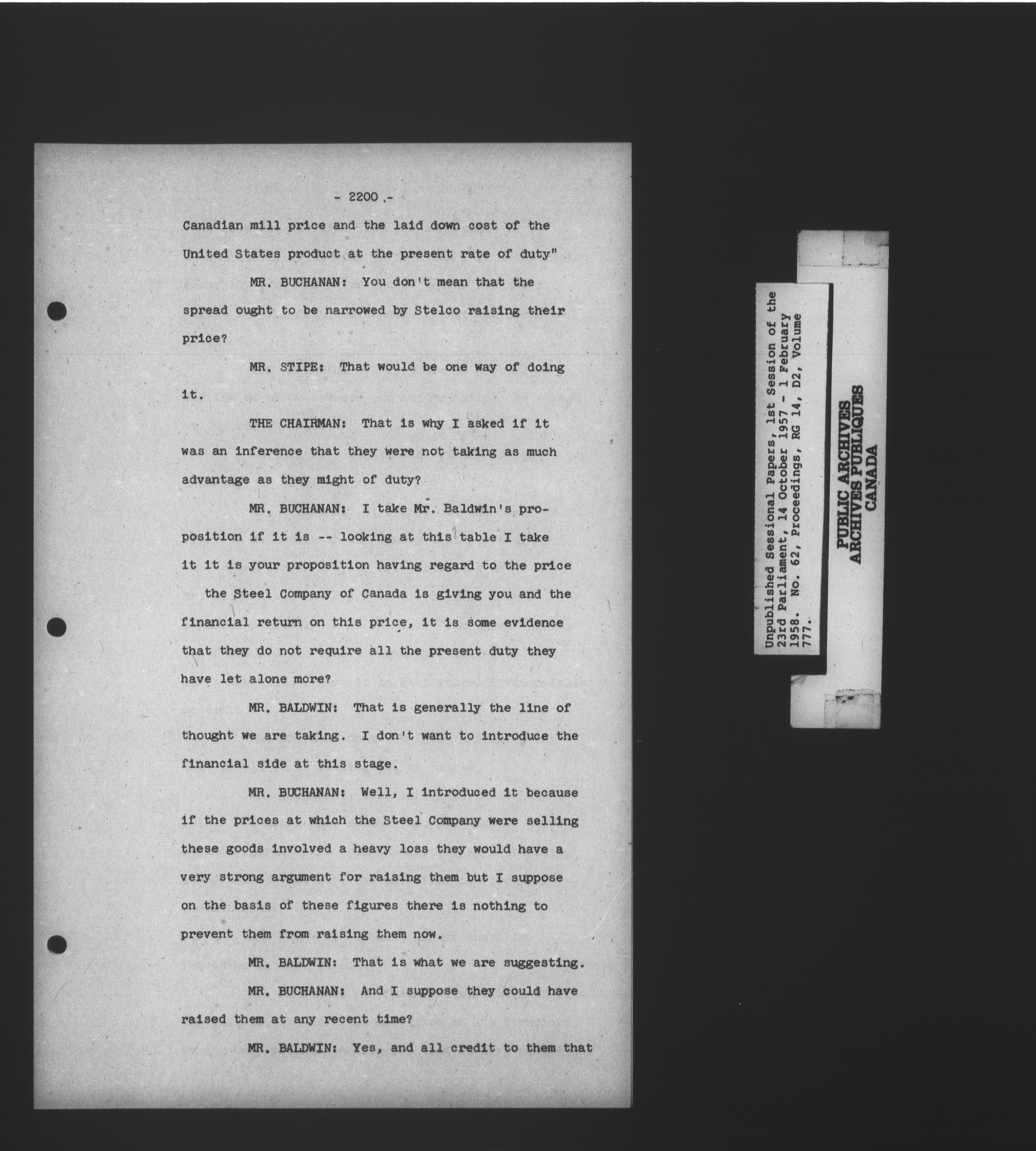 Unpublished sessional papers, 1st Session, 23rd Parliament - 3604
