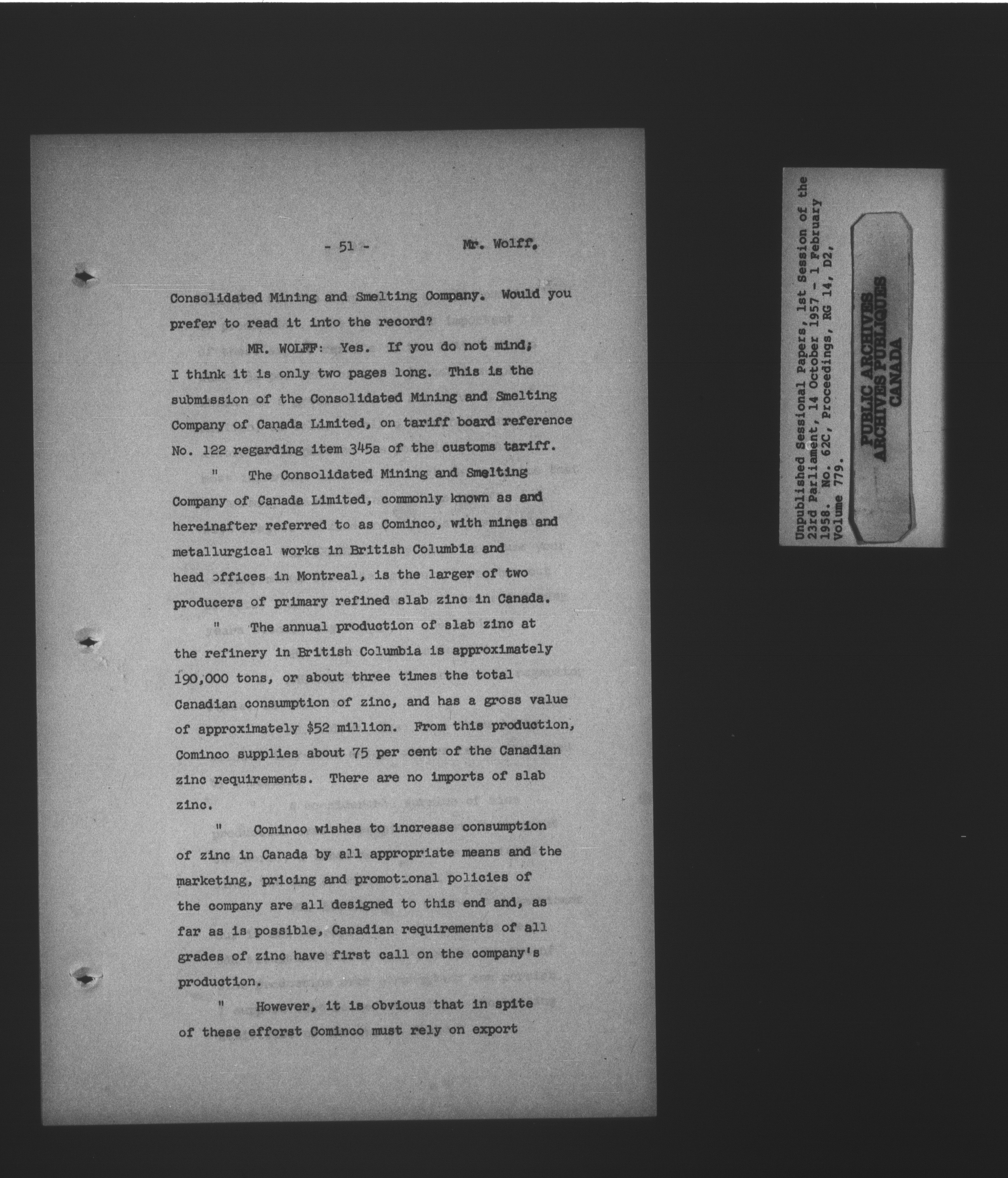 Unpublished sessional papers, 1st Session, 23rd Parliament - 3605