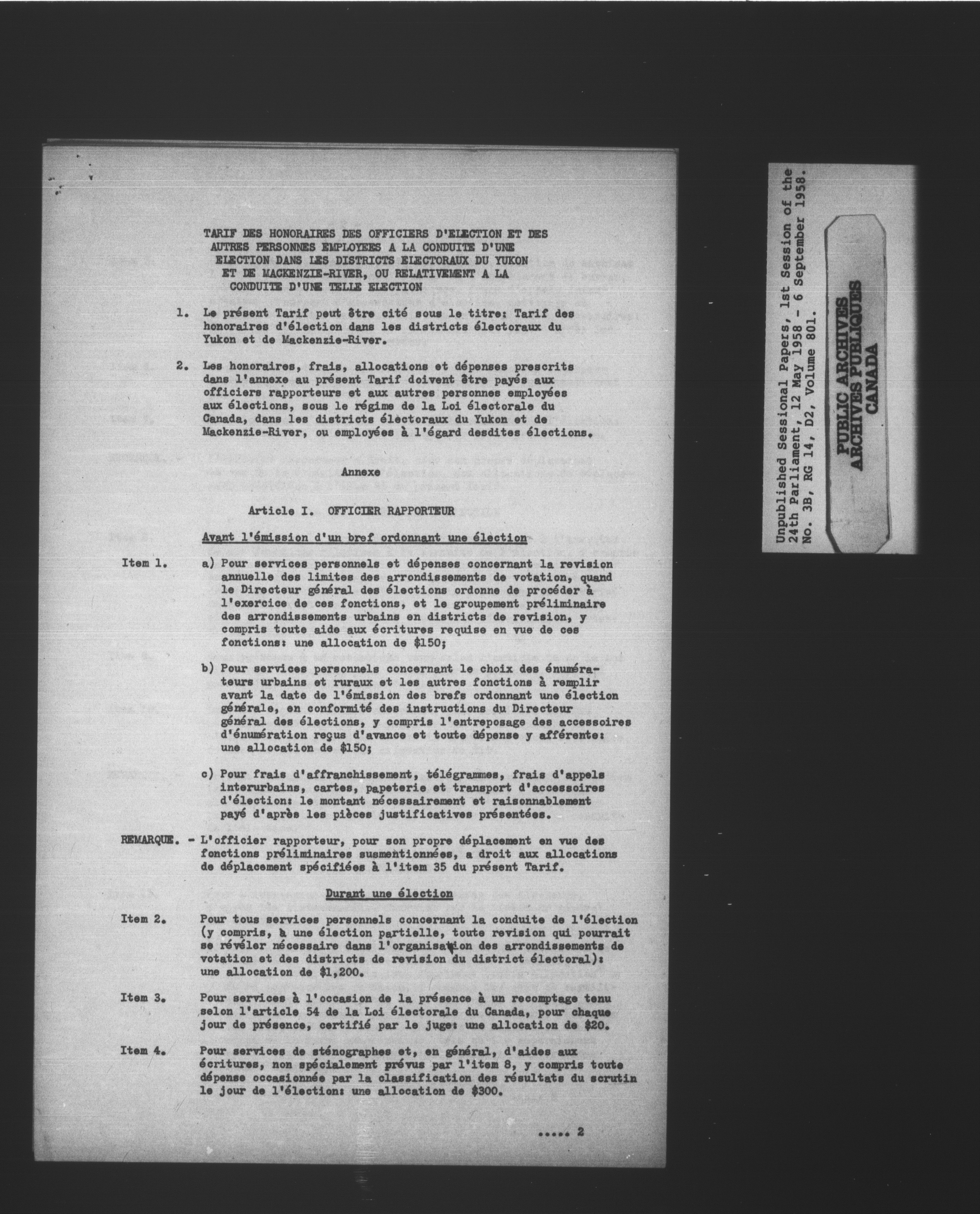 Unpublished sessional papers, 1st Session, 24th Parliament - 3608