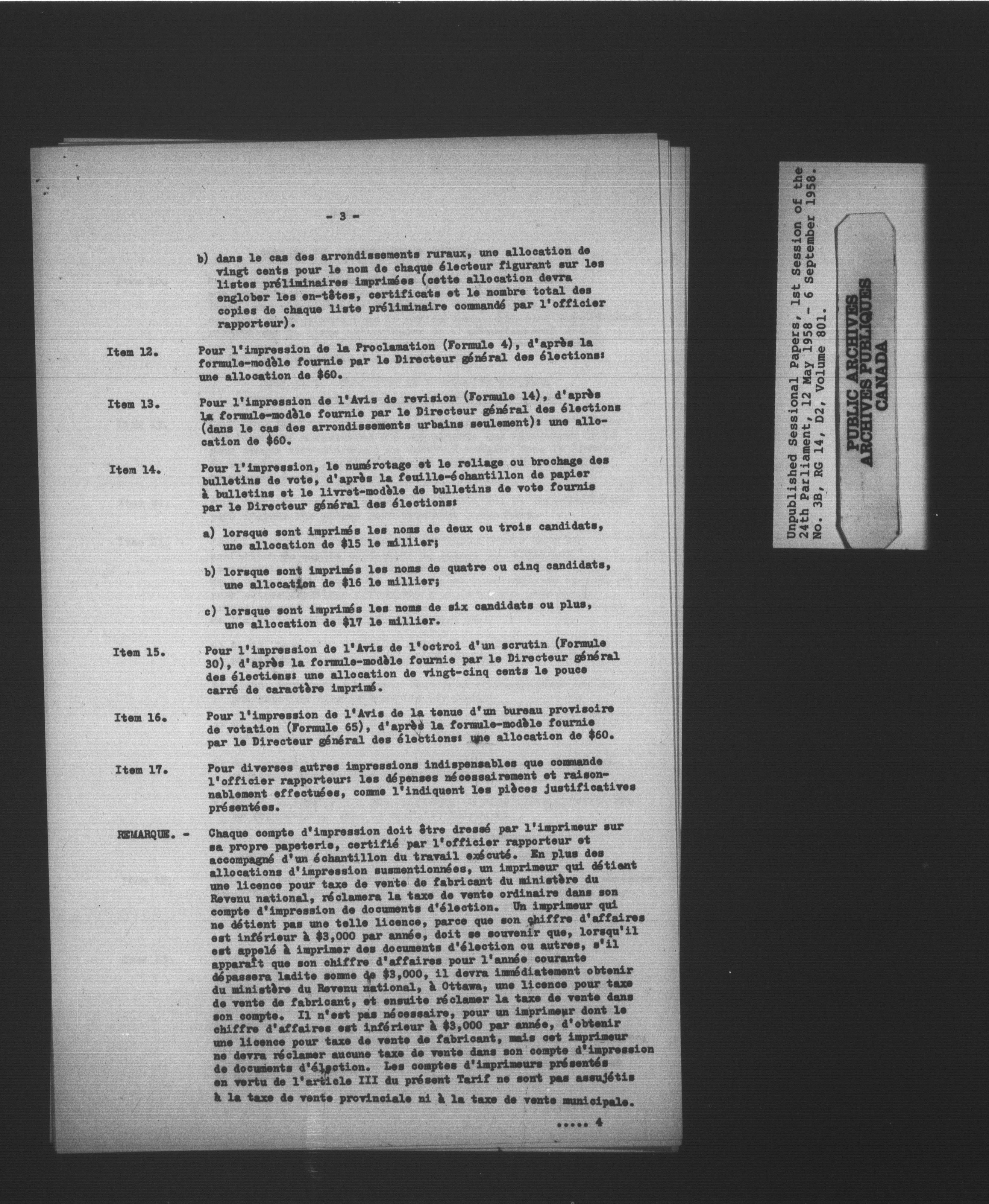 Unpublished sessional papers, 1st Session, 24th Parliament - 3608