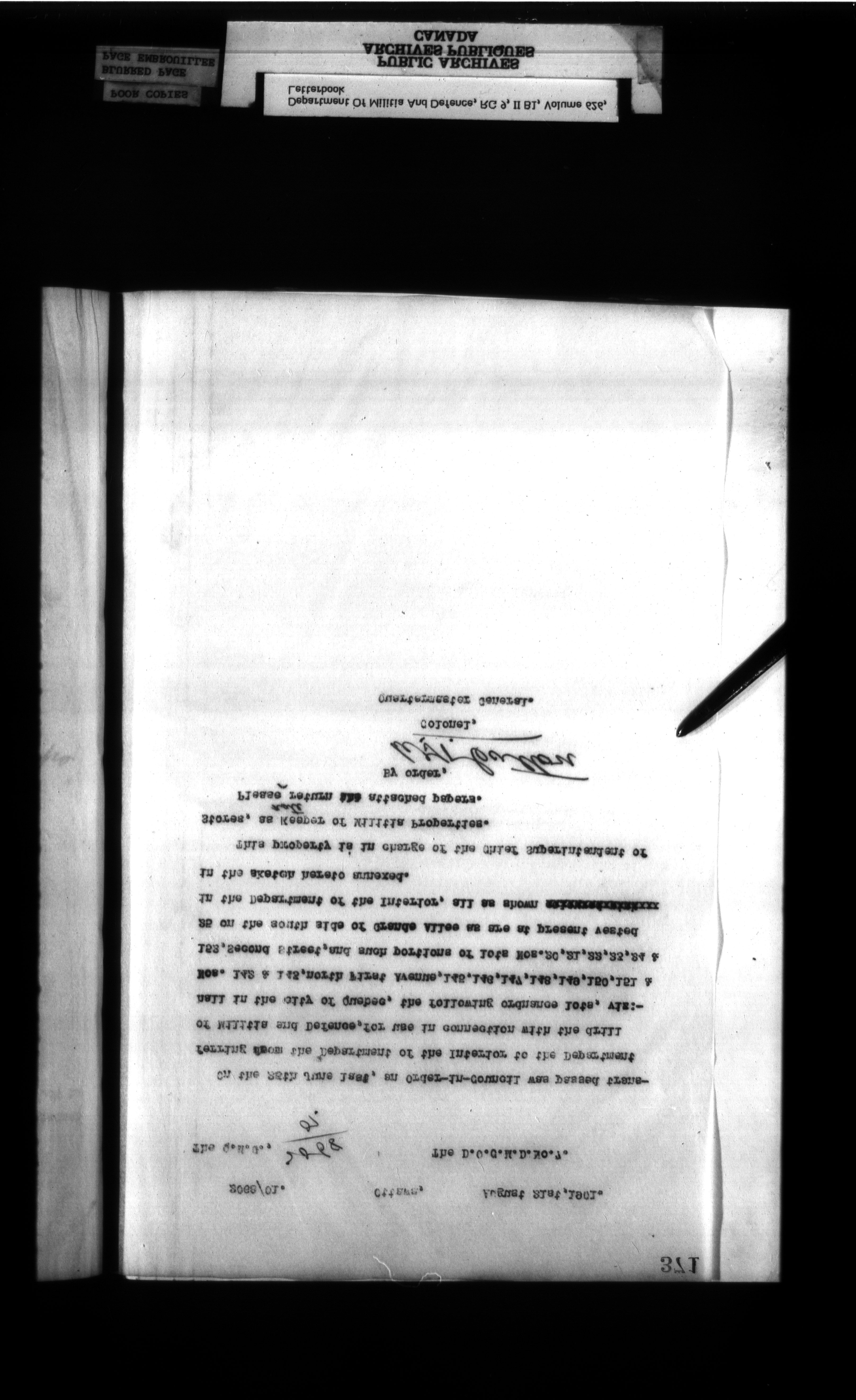 Correspondence of the General Officer Commanding (GOC) of the Canadian Militia and his predecessor, the Adjutant General - 361