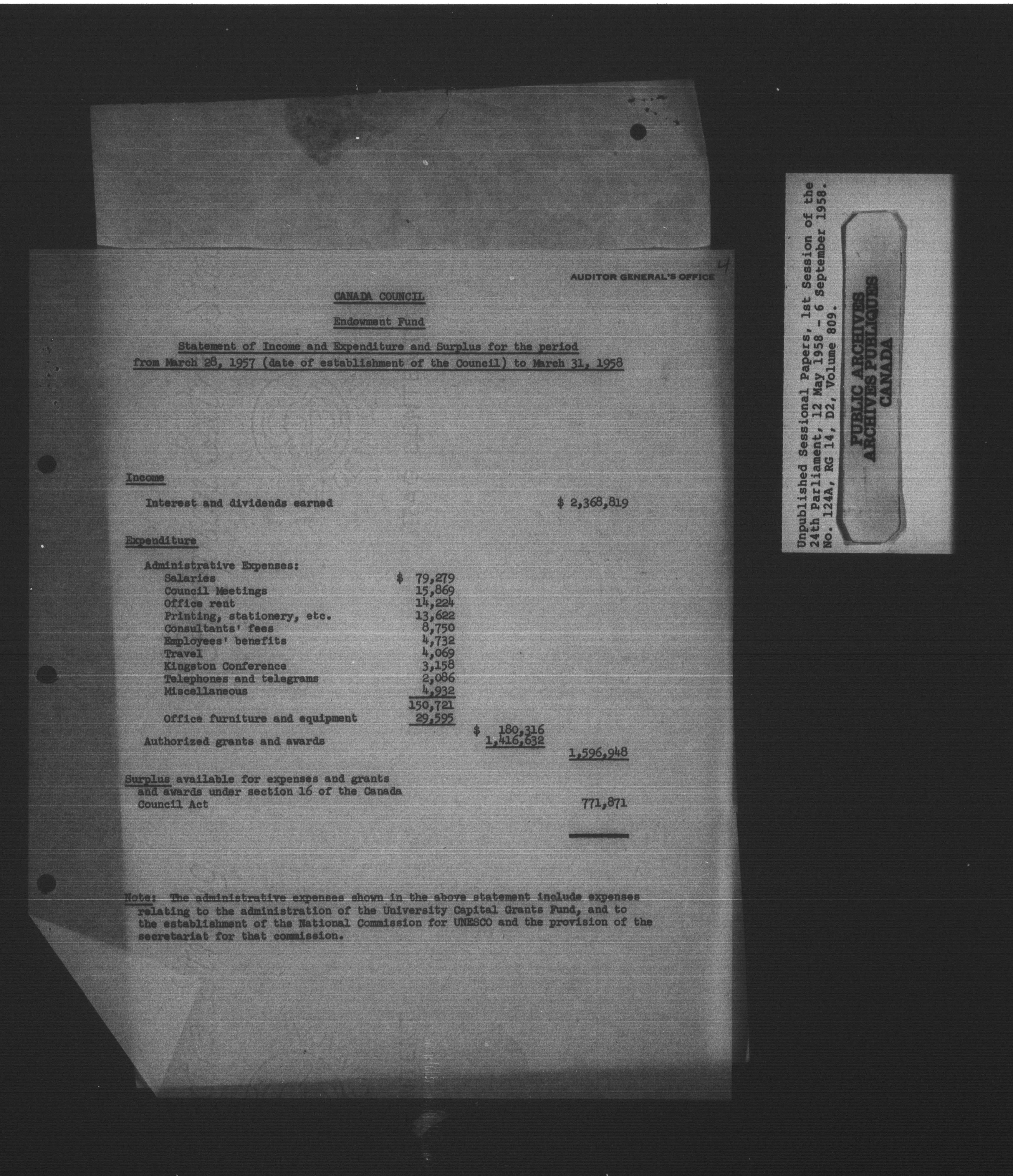 Unpublished sessional papers, 1st Session, 24th Parliament - 3610