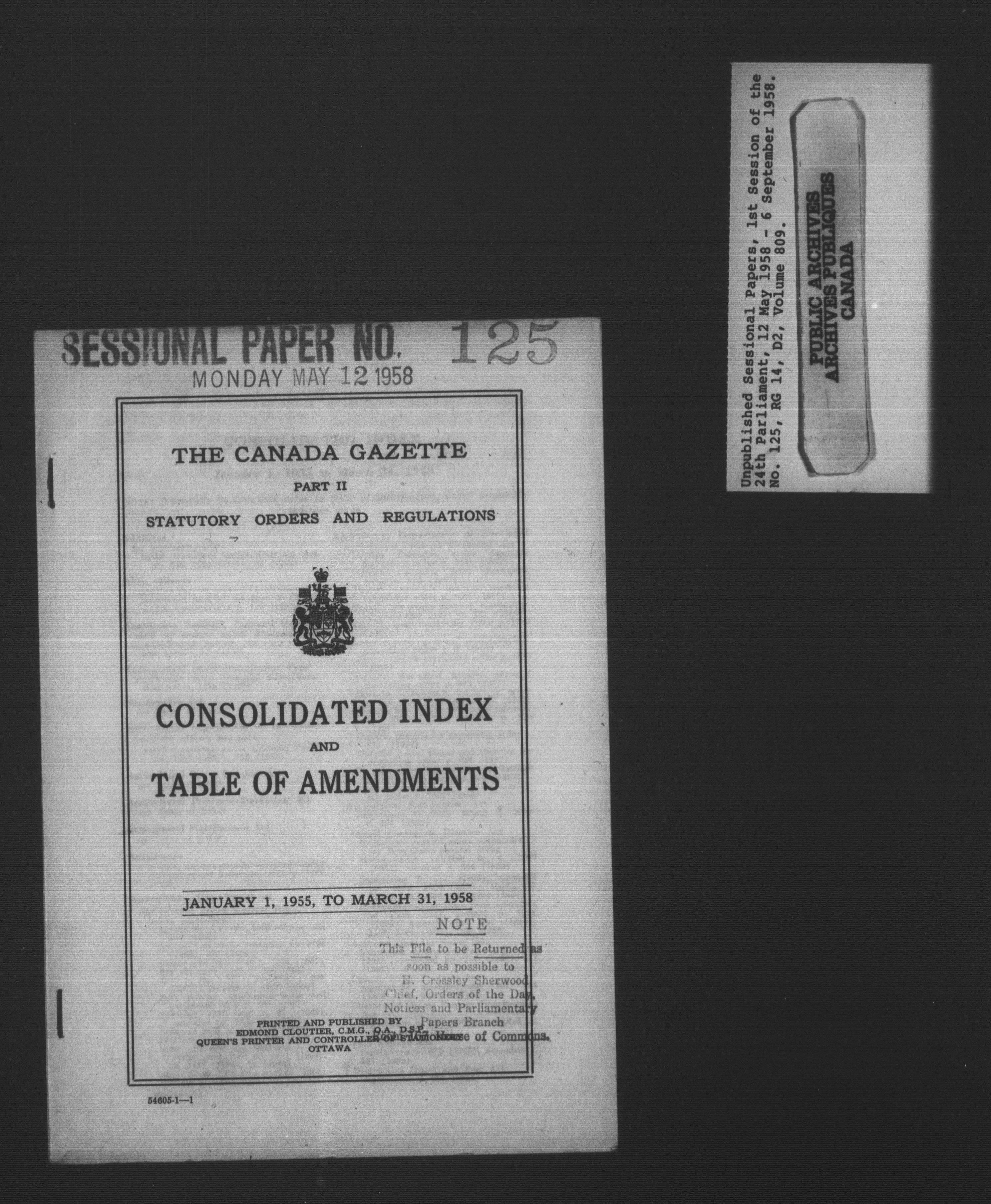 Unpublished sessional papers, 1st Session, 24th Parliament - 3610