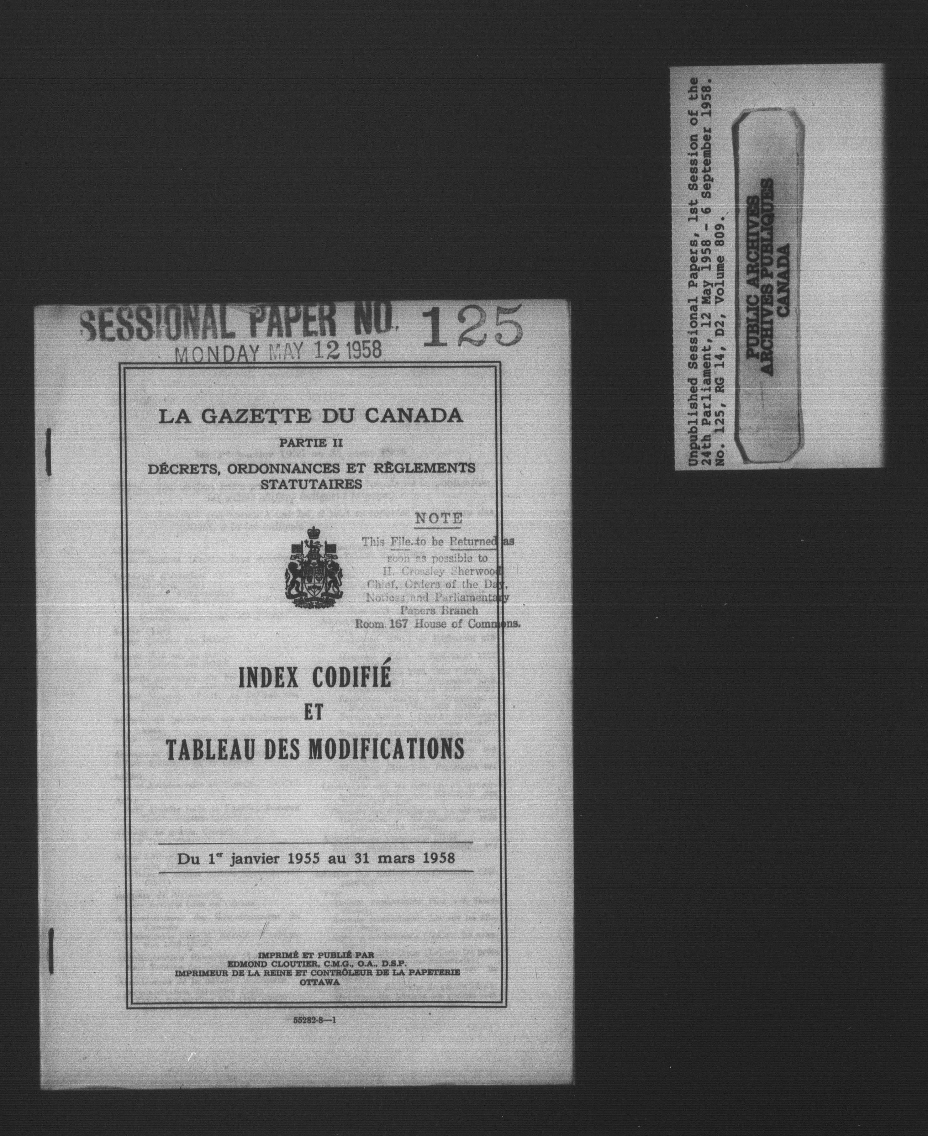 Unpublished sessional papers, 1st Session, 24th Parliament - 3610