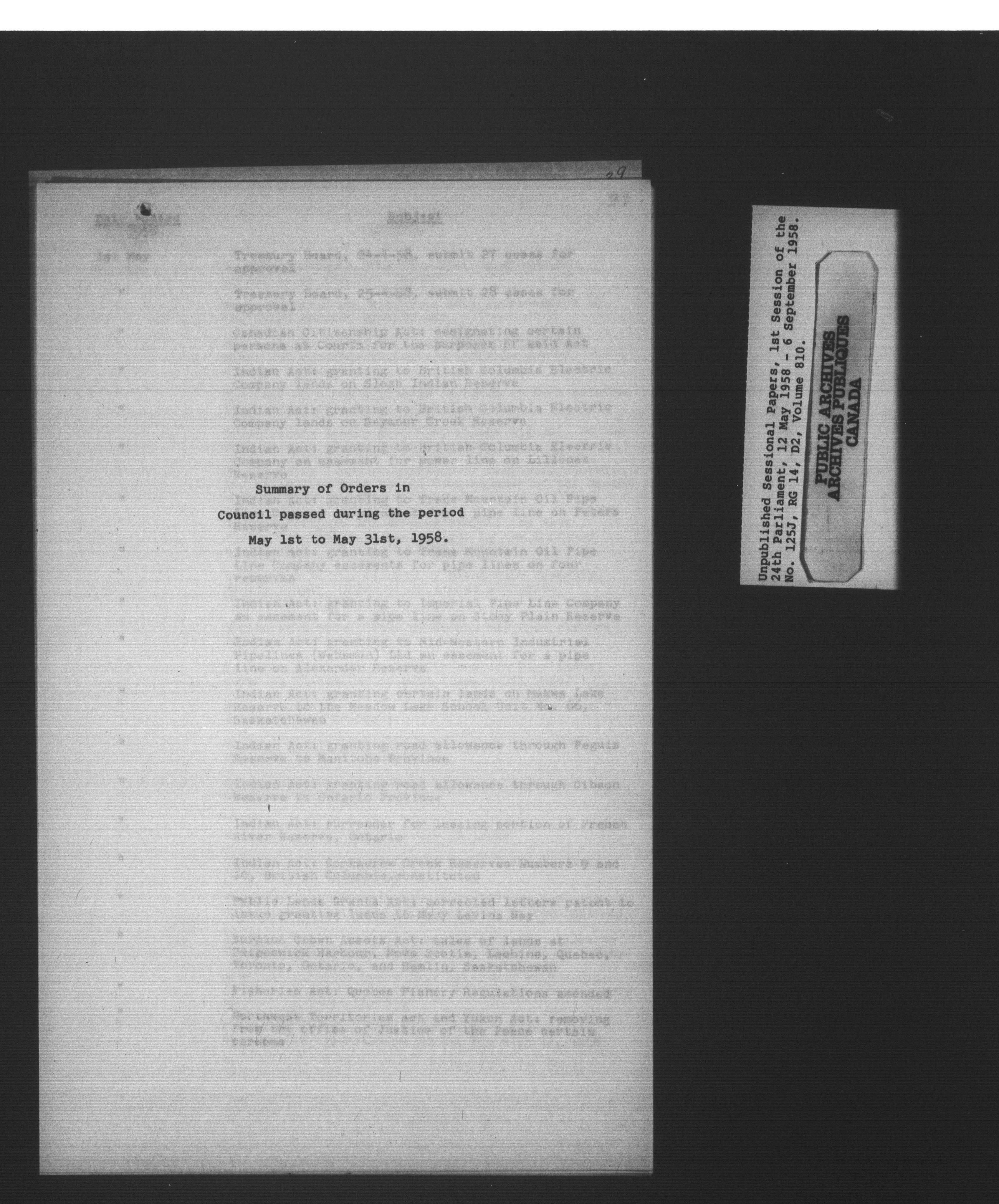 Unpublished sessional papers, 1st Session, 24th Parliament - 3611