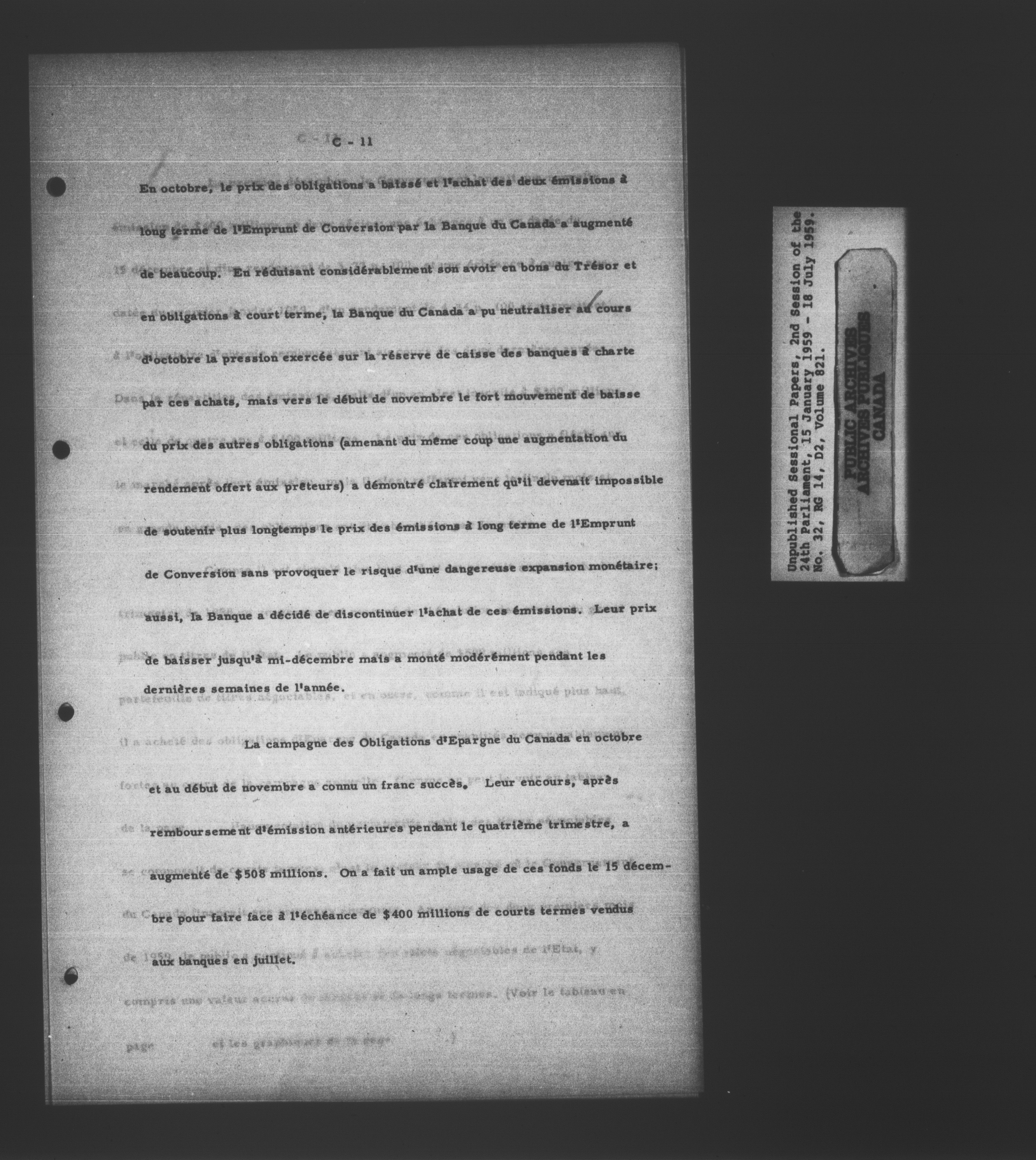 Unpublished sessional papers, 2nd Session, 24th Parliament - 3614