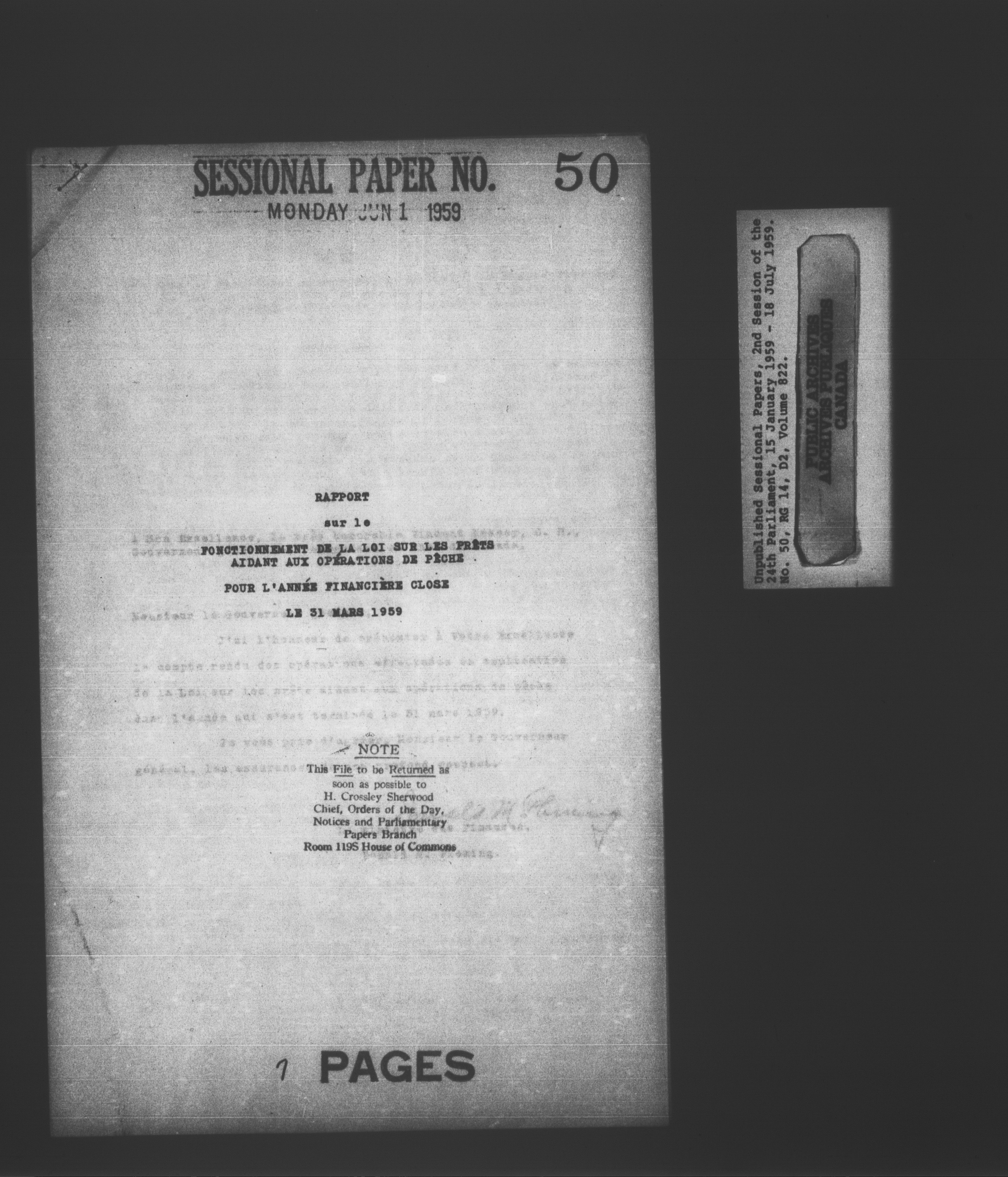 Unpublished sessional papers, 2nd Session, 24th Parliament - 3614