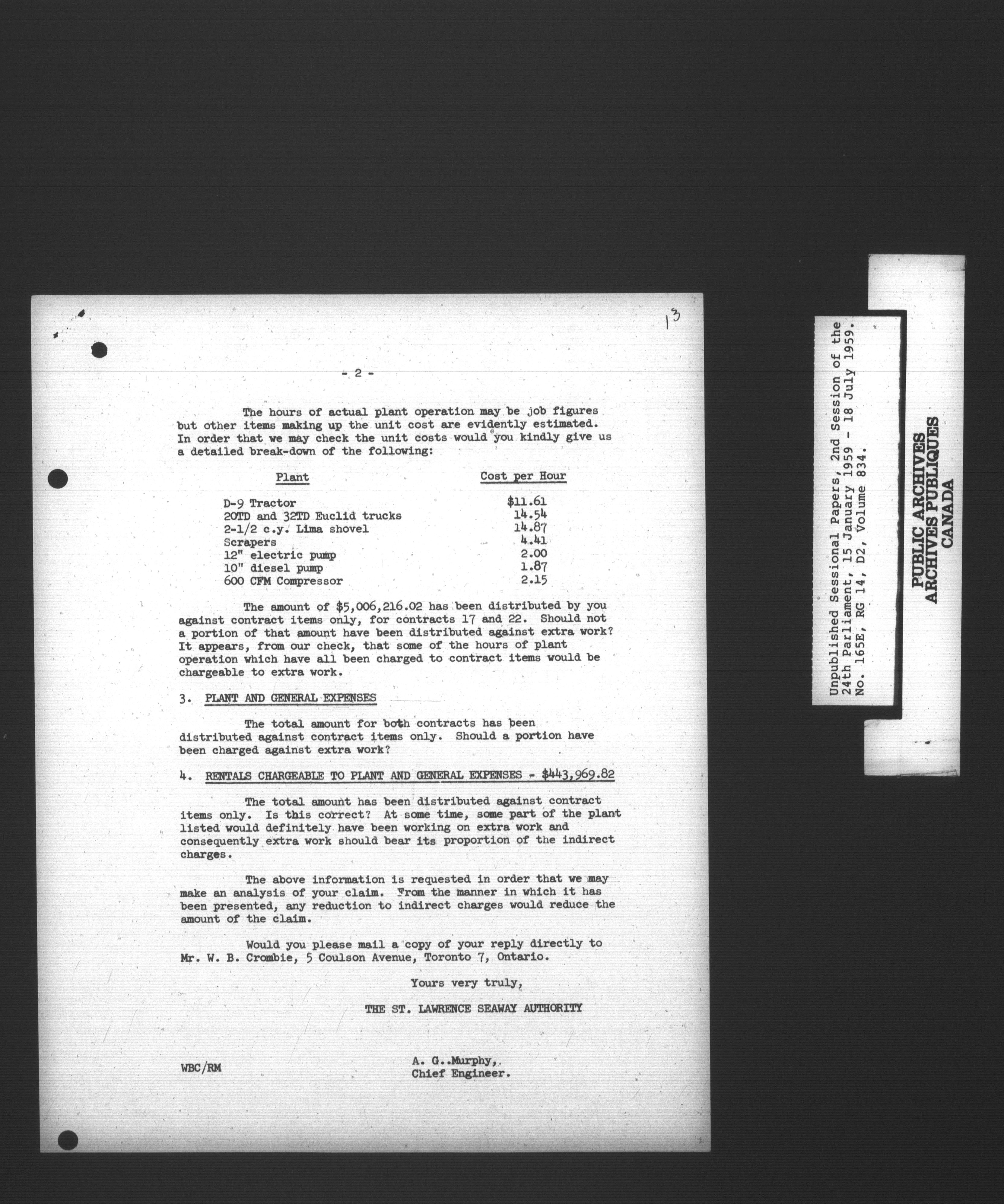 Unpublished sessional papers, 2nd Session, 24th Parliament - 3619