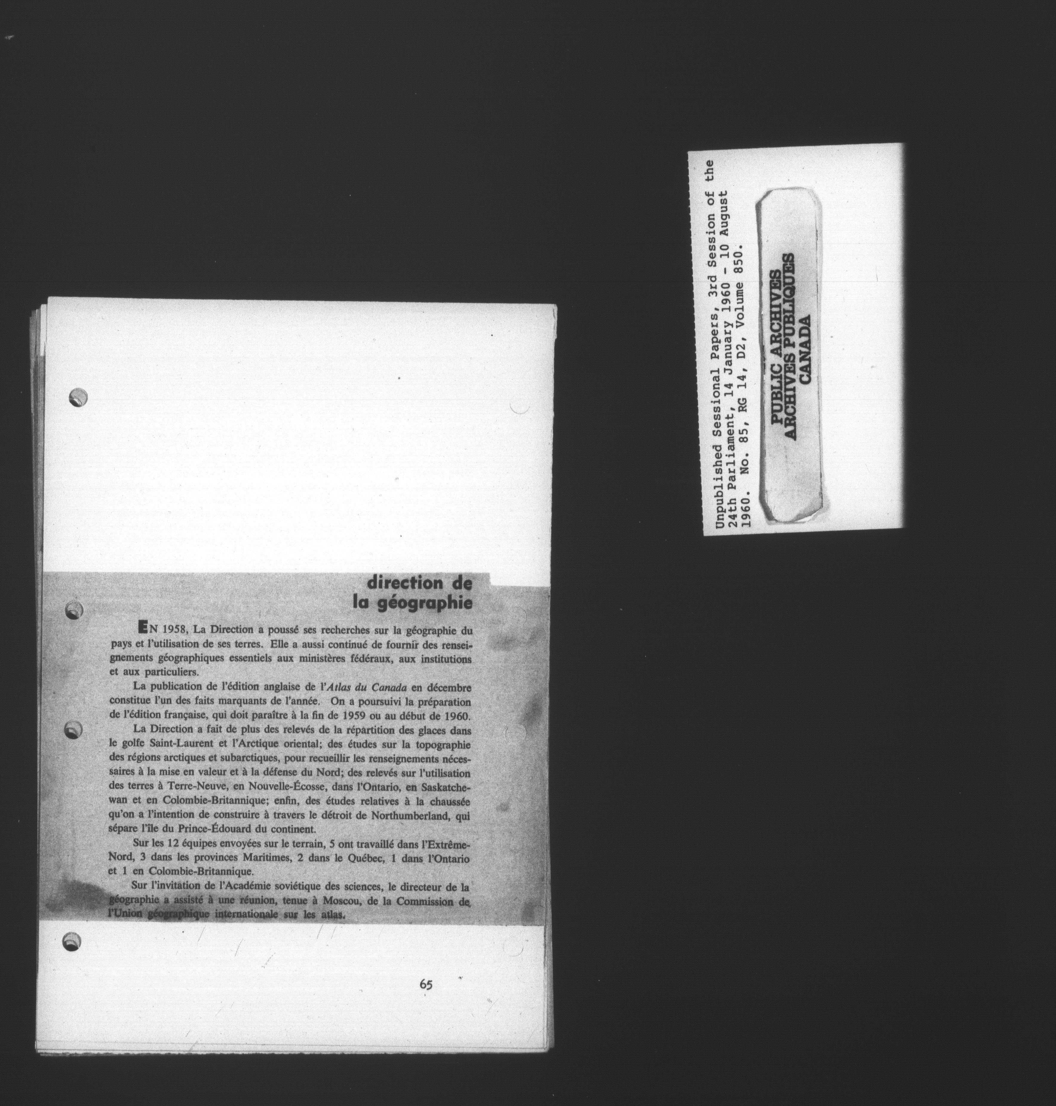 Unpublished sessional papers, 3rd Session, 24th Parliament - 3623