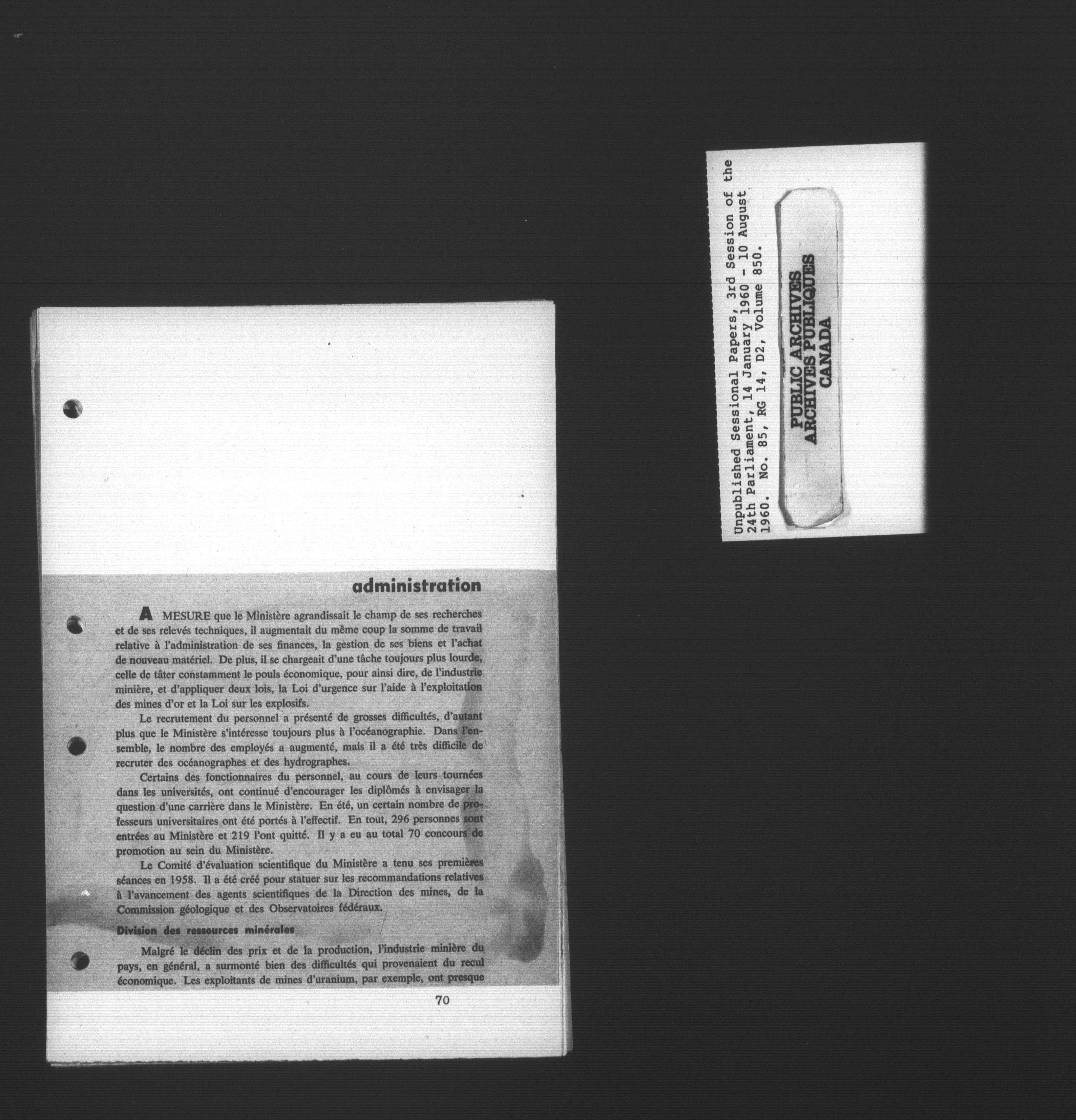 Unpublished sessional papers, 3rd Session, 24th Parliament - 3623