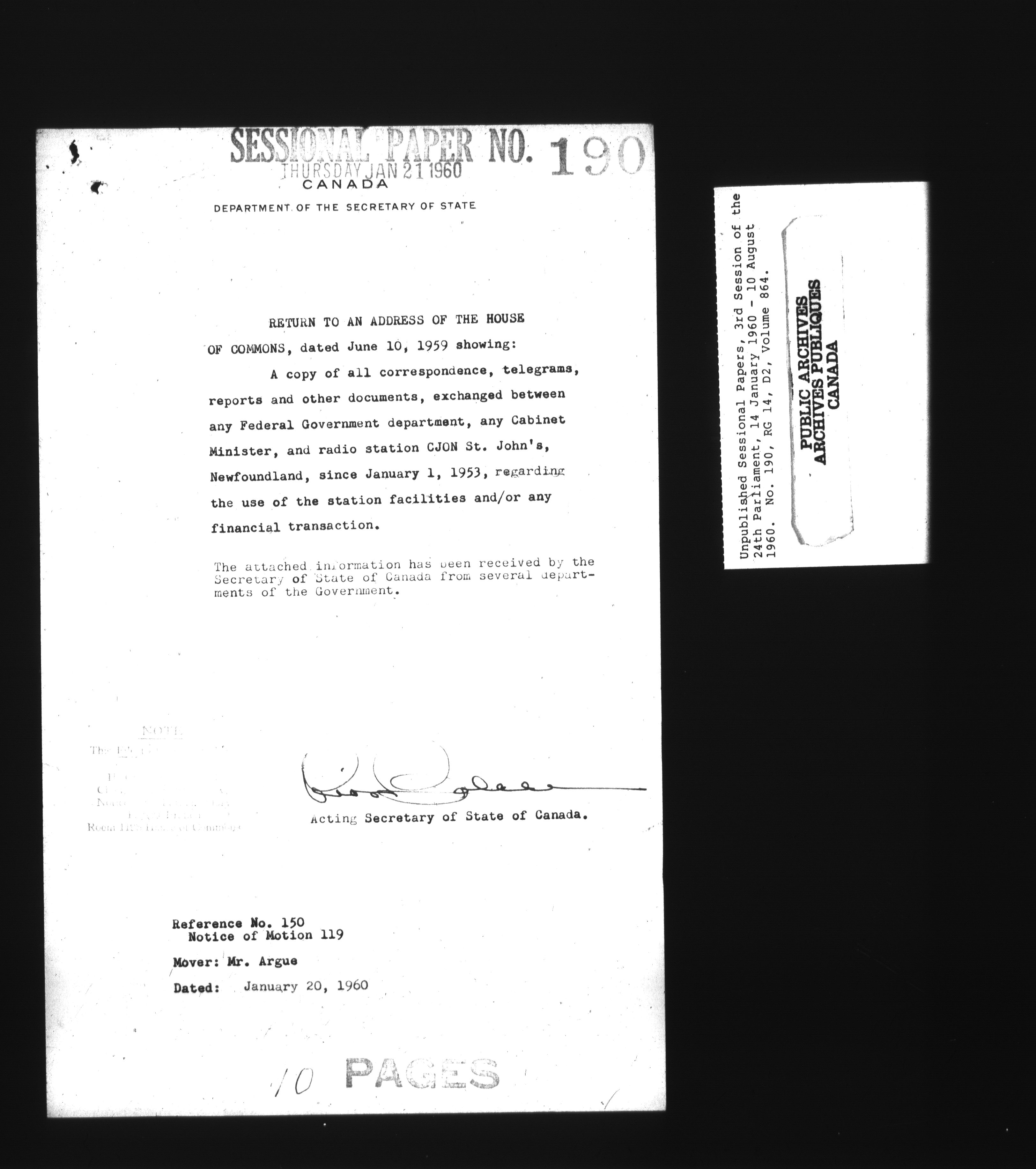 Unpublished sessional papers, 3rd Session, 24th Parliament - 3628