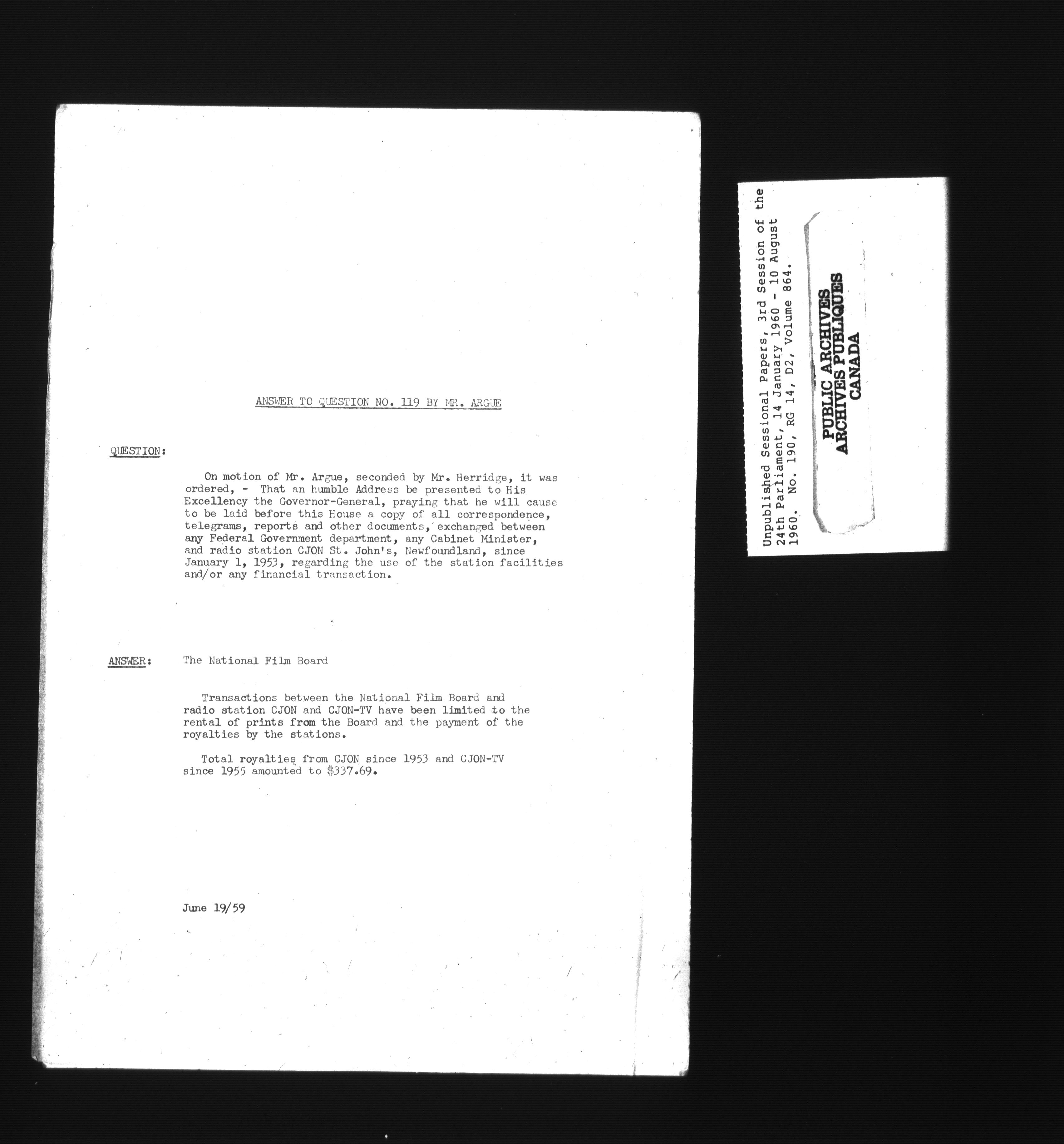 Unpublished sessional papers, 3rd Session, 24th Parliament - 3628