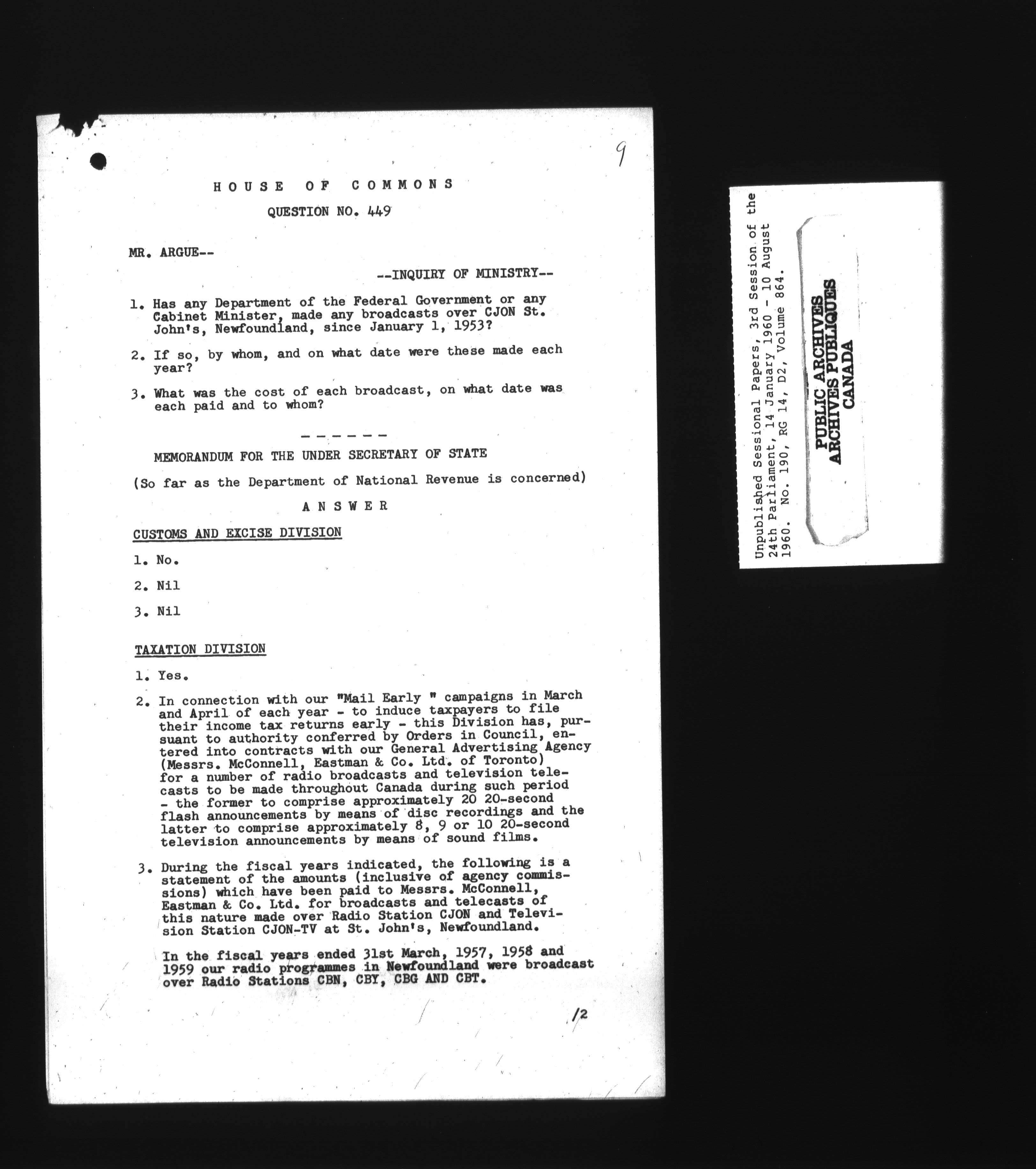 Unpublished sessional papers, 3rd Session, 24th Parliament - 3628
