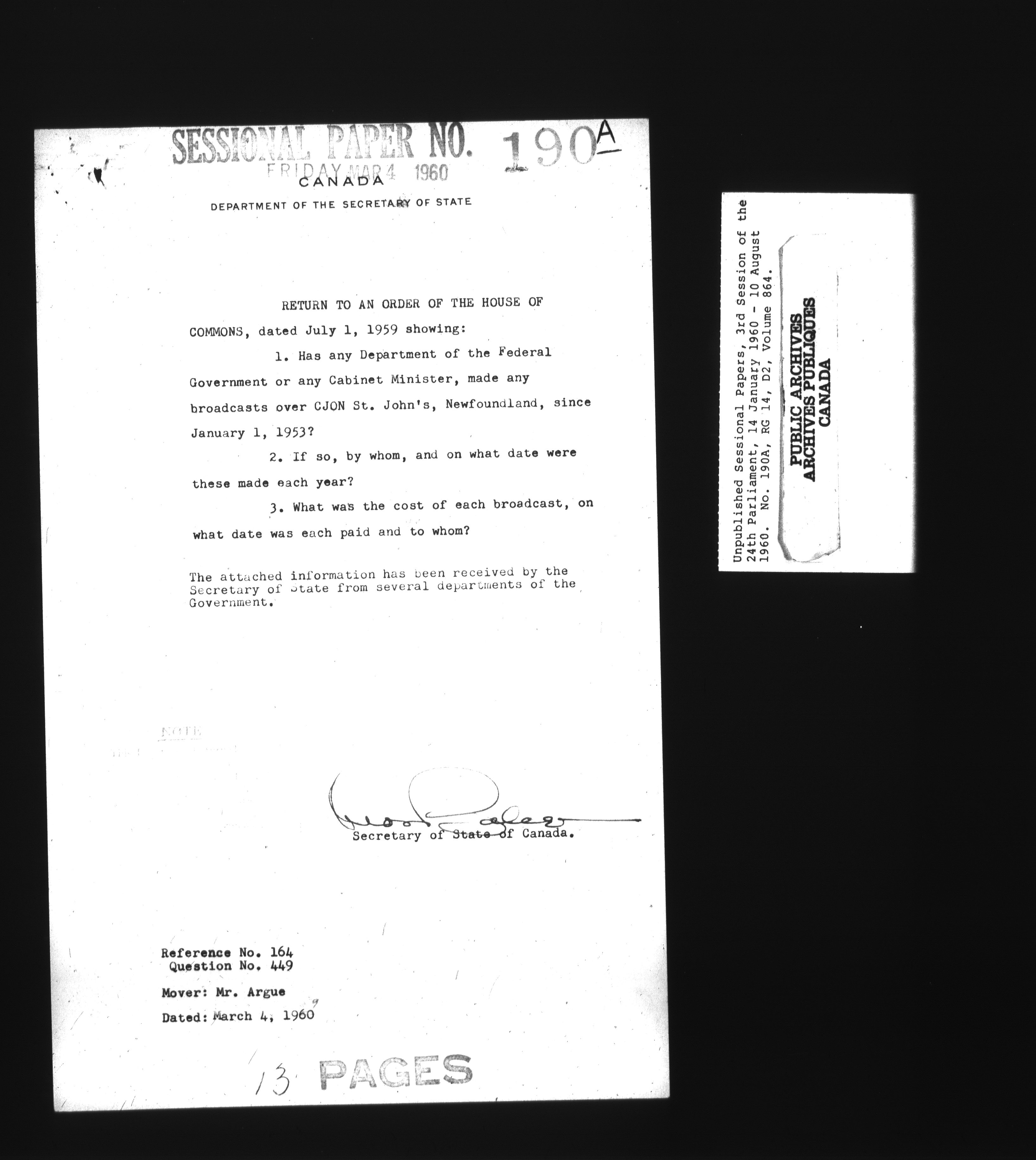 Unpublished sessional papers, 3rd Session, 24th Parliament - 3628