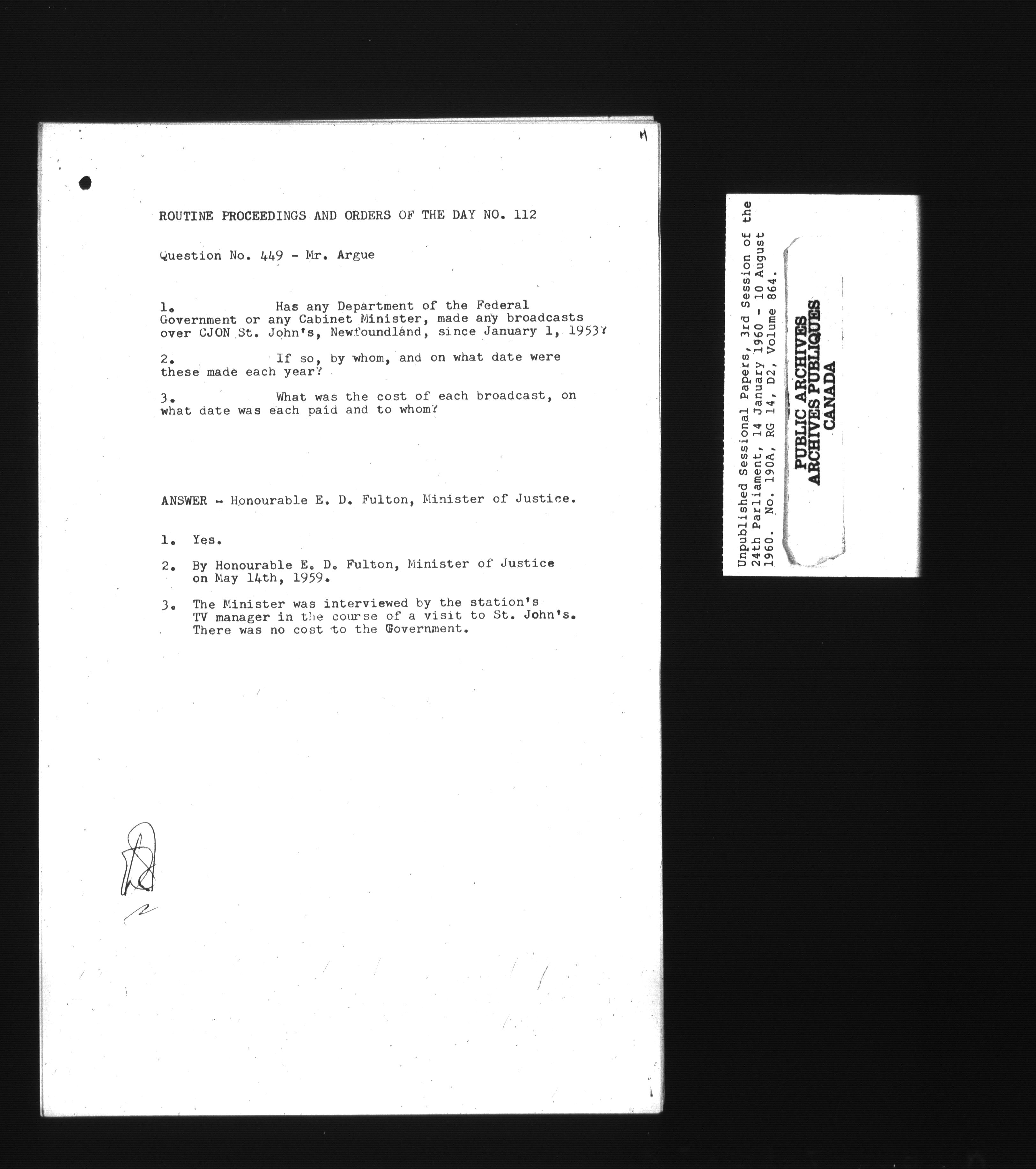 Unpublished sessional papers, 3rd Session, 24th Parliament - 3628