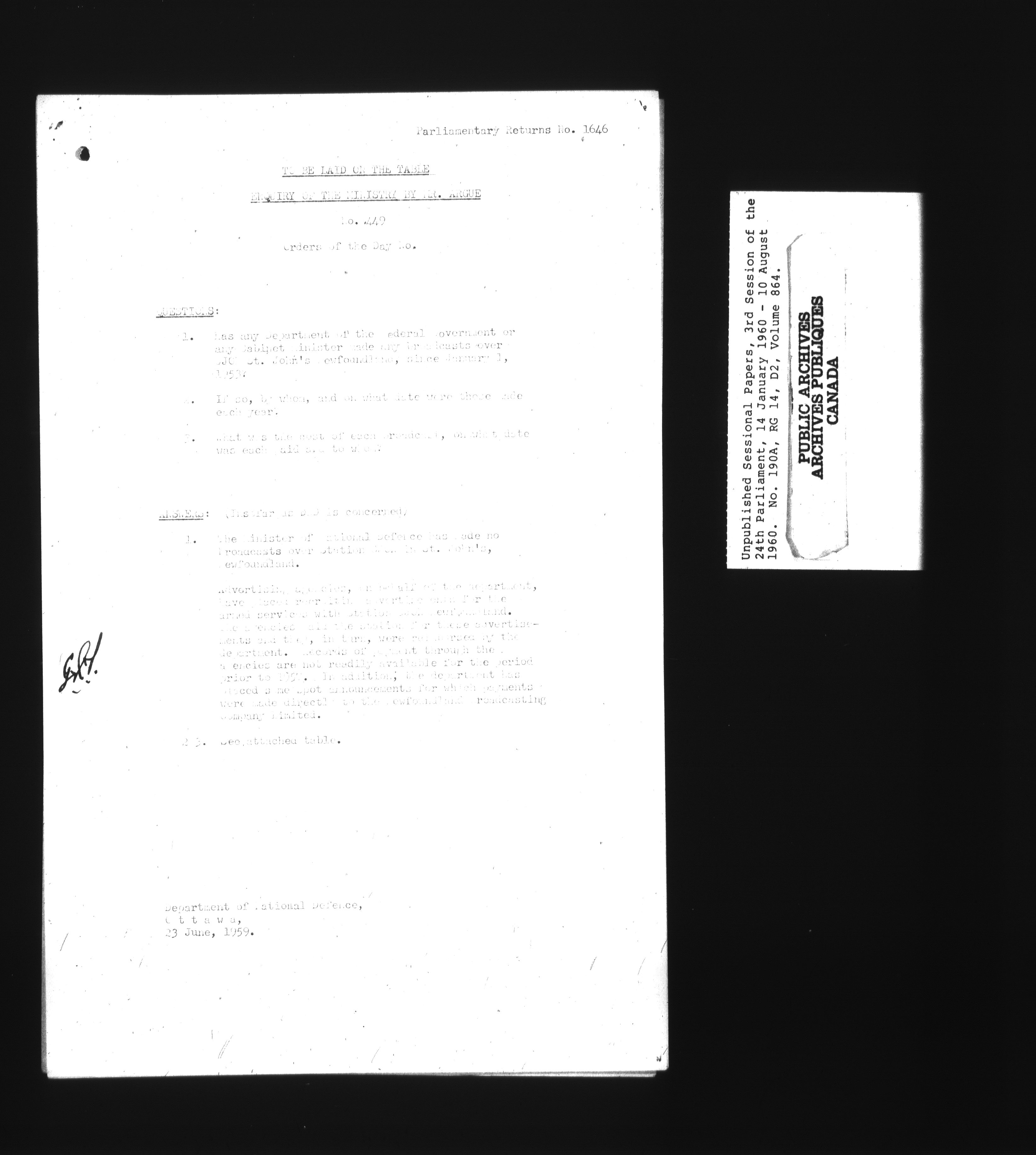 Unpublished sessional papers, 3rd Session, 24th Parliament - 3628