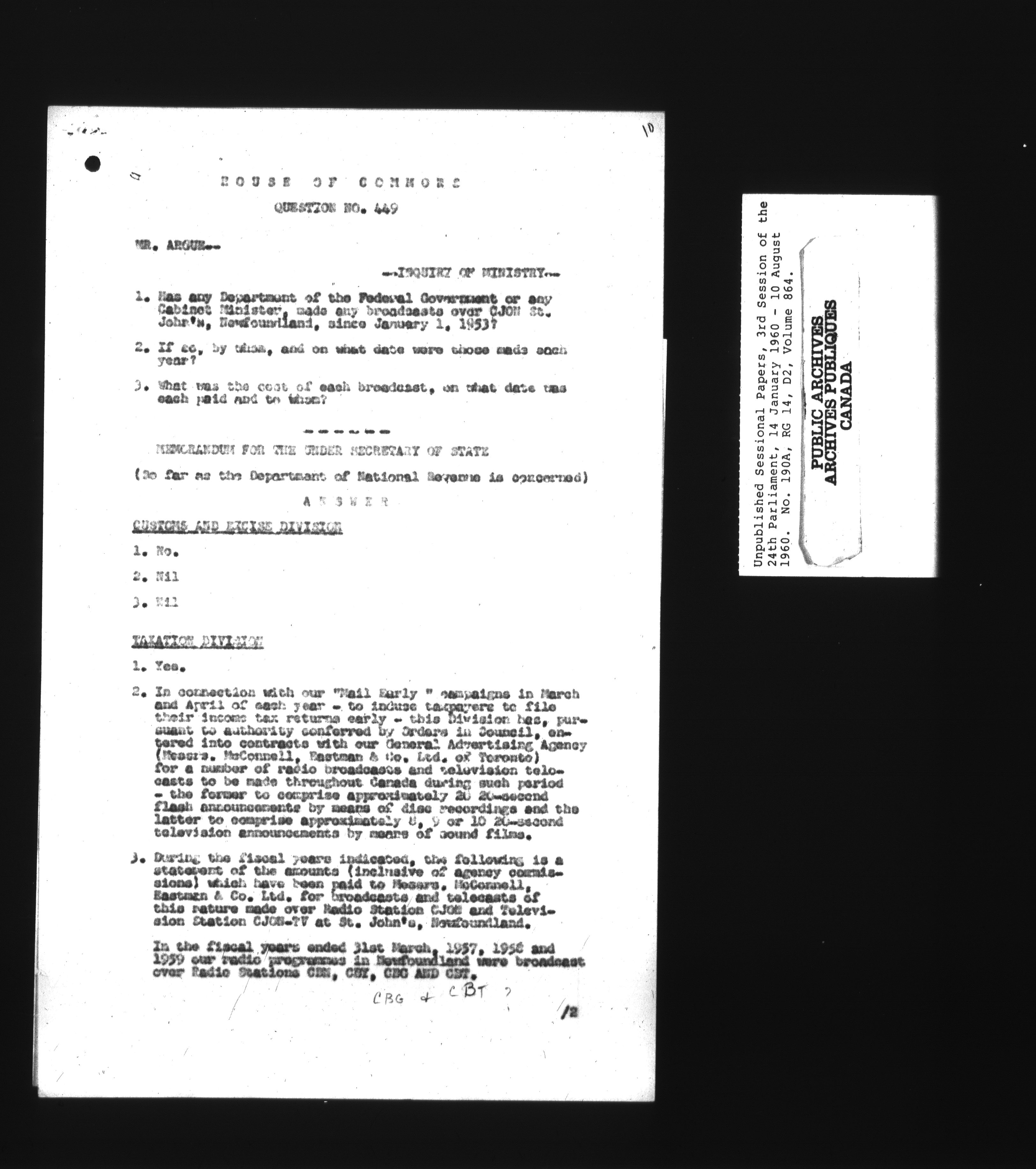 Unpublished sessional papers, 3rd Session, 24th Parliament - 3628