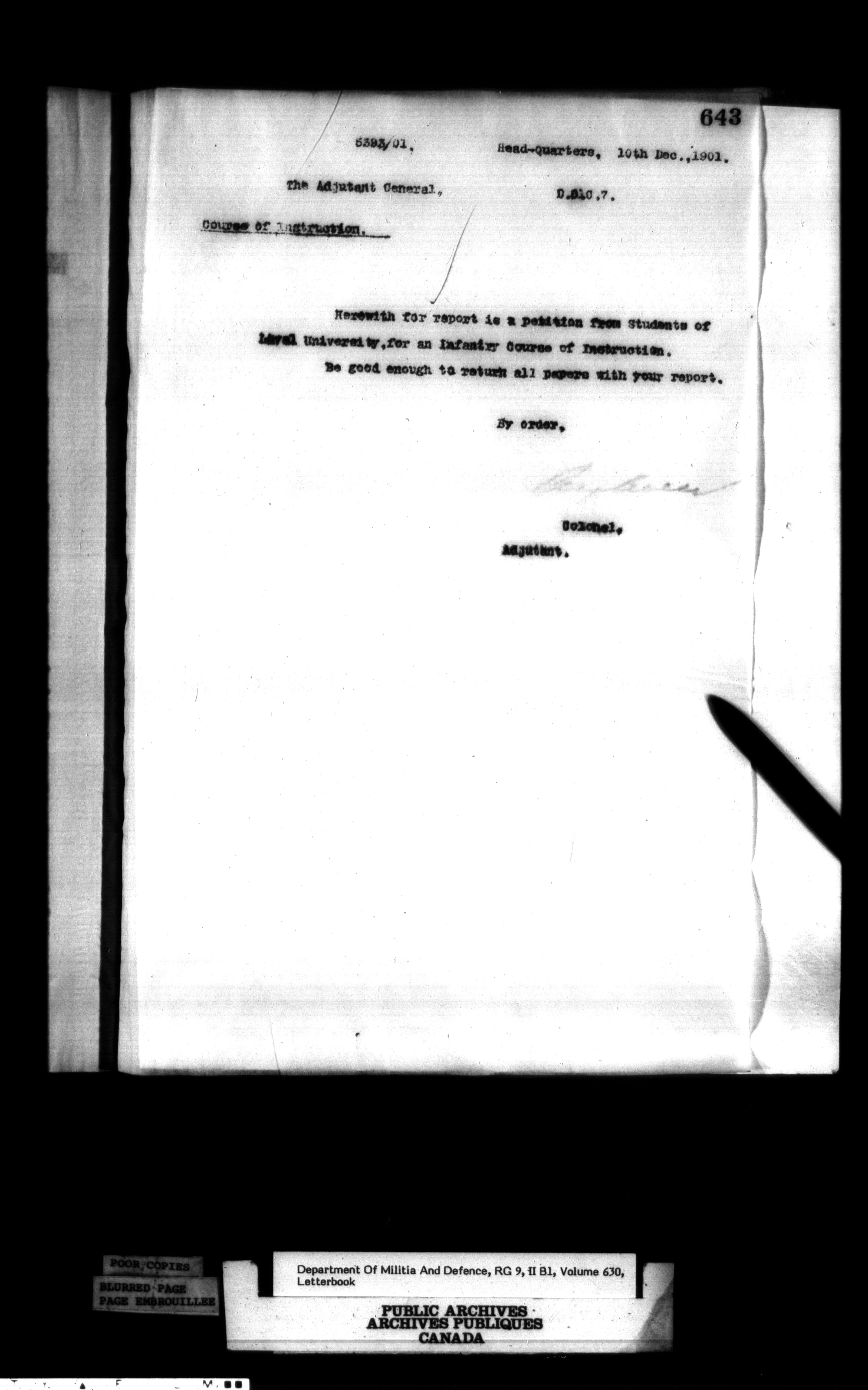 Correspondence of the General Officer Commanding (GOC) of the Canadian Militia and his predecessor, the Adjutant General - 363