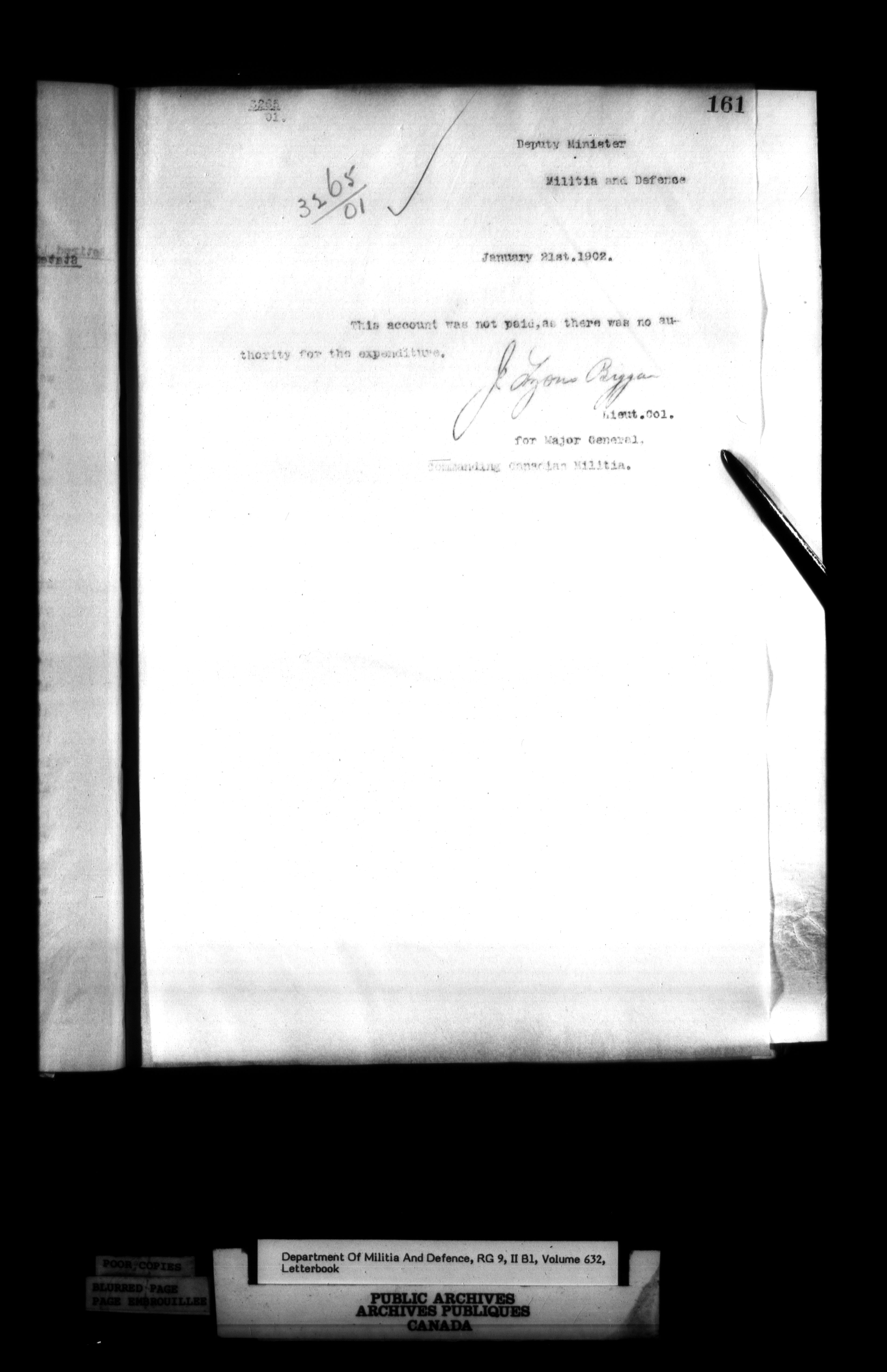 Correspondence of the General Officer Commanding (GOC) of the Canadian Militia and his predecessor, the Adjutant General - 364