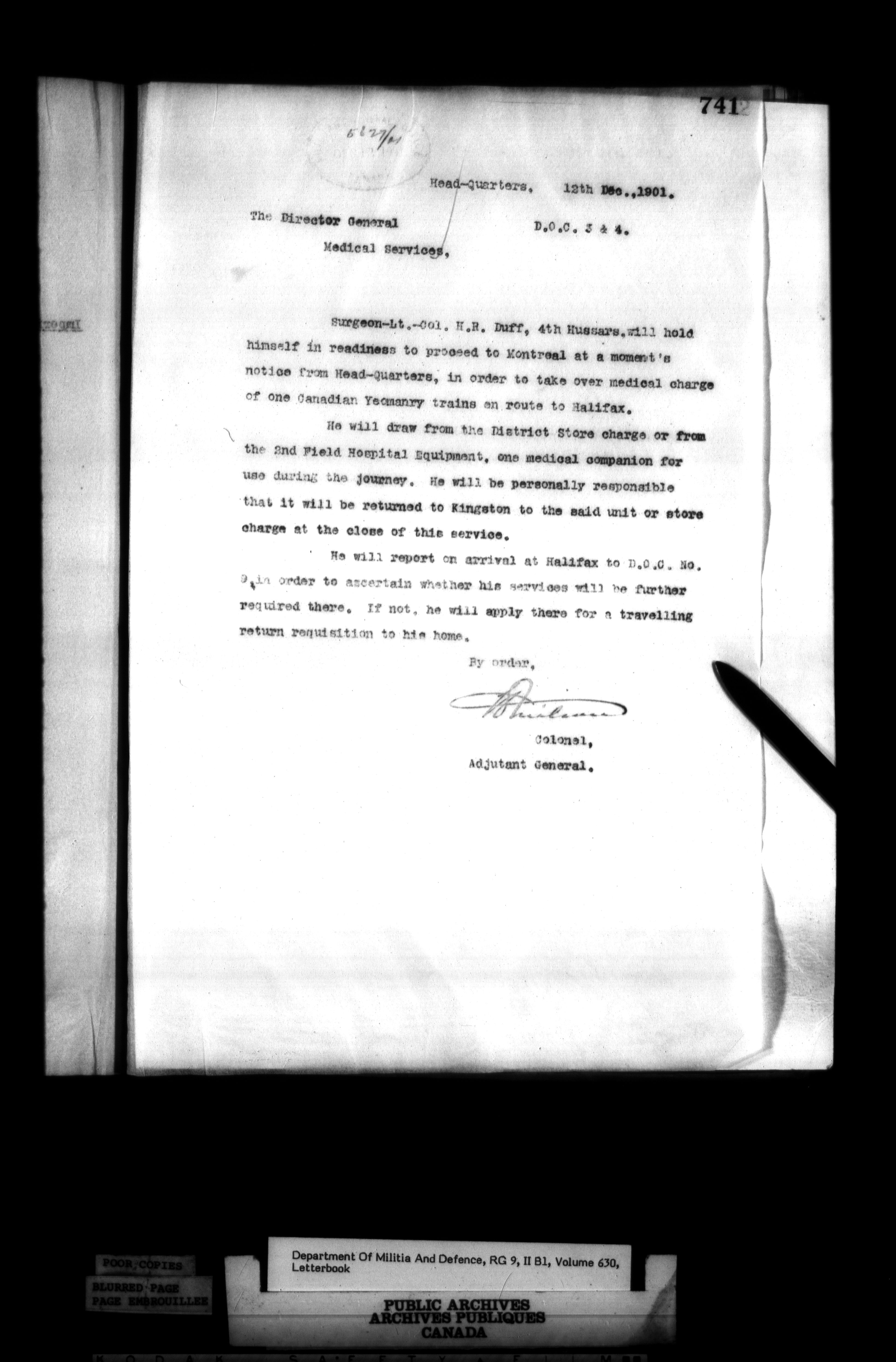 Correspondence of the General Officer Commanding (GOC) of the Canadian Militia and his predecessor, the Adjutant General - 364