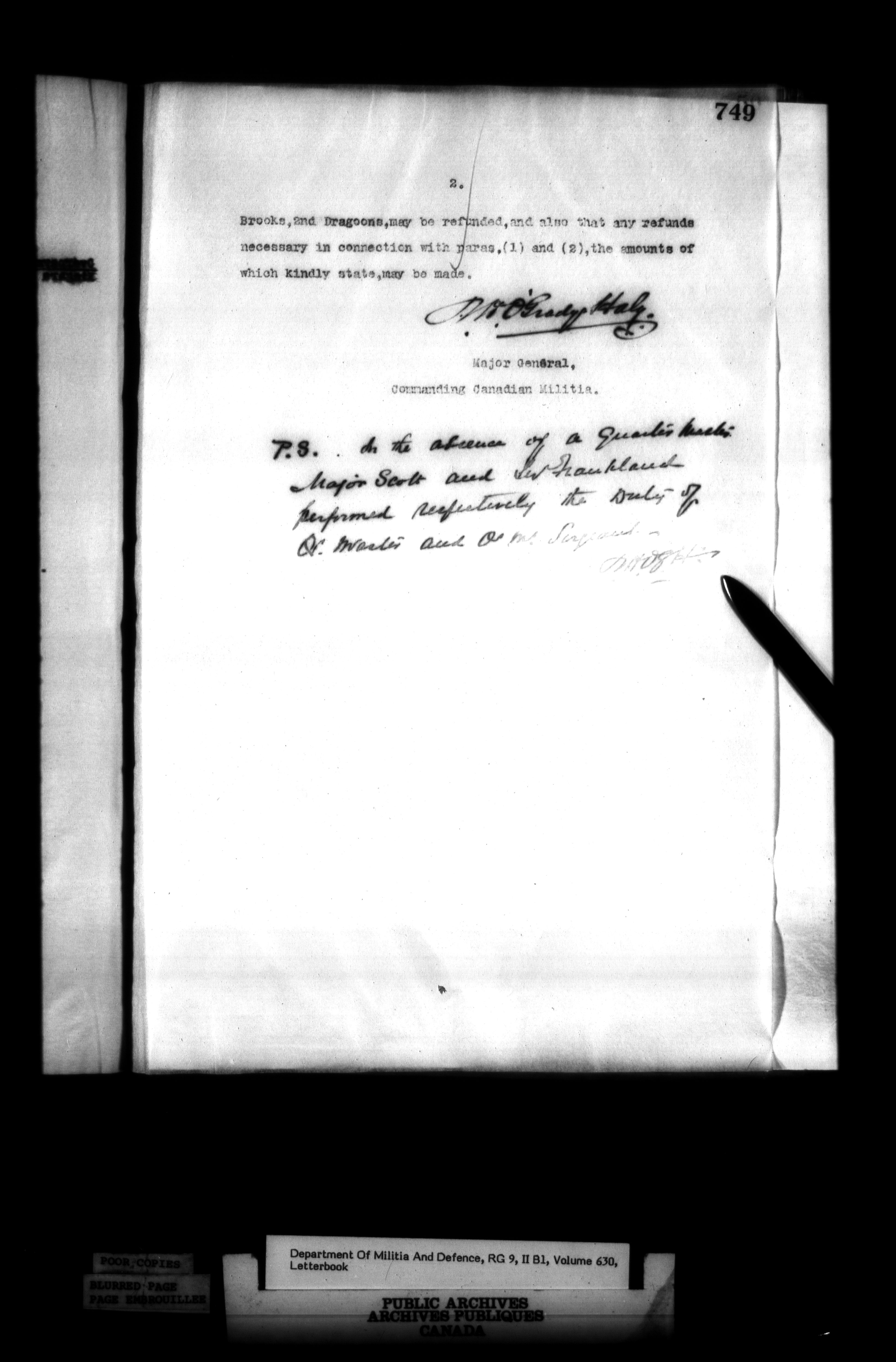 Correspondence of the General Officer Commanding (GOC) of the Canadian Militia and his predecessor, the Adjutant General - 364