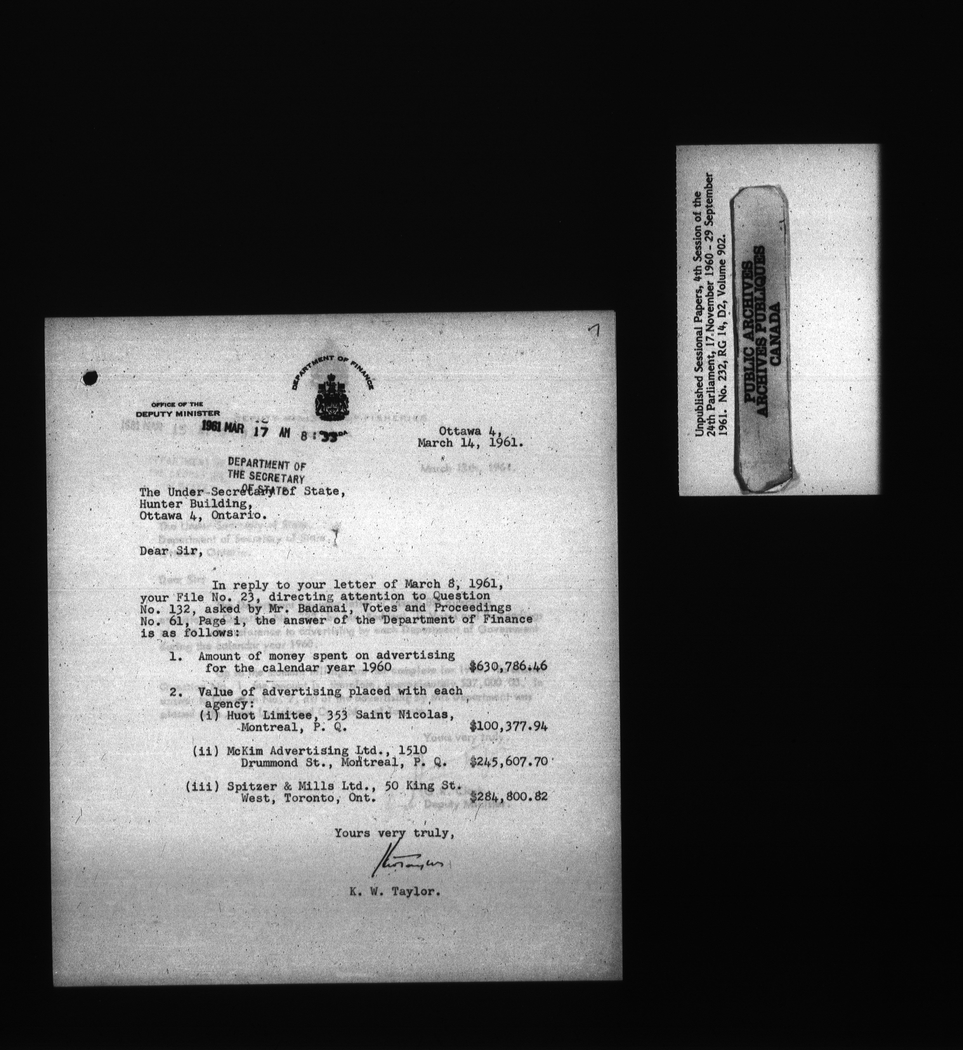 Unpublished sessional papers, 4th Session, 24th Parliament - 3645