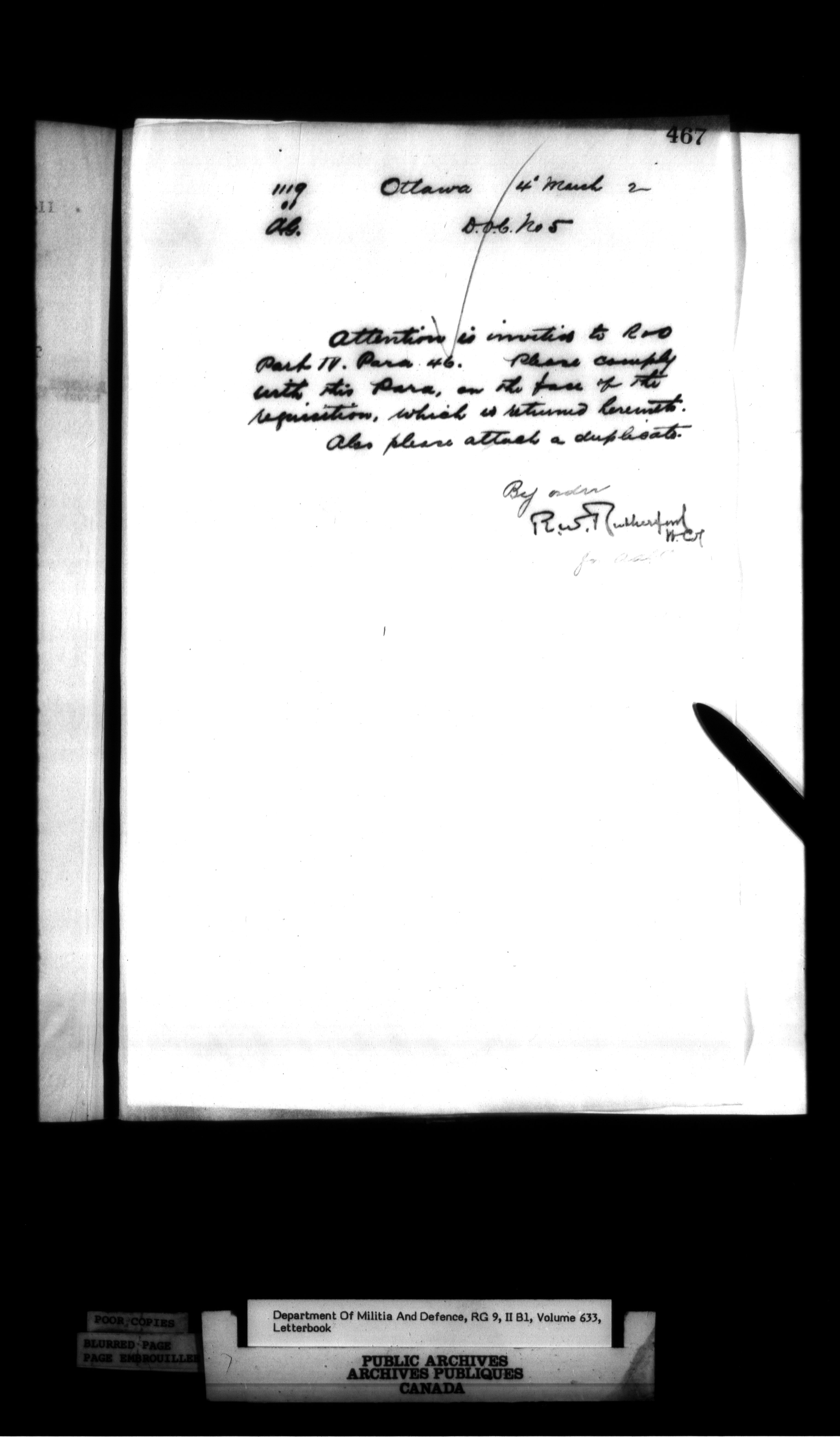 Correspondence of the General Officer Commanding (GOC) of the Canadian Militia and his predecessor, the Adjutant General - 365