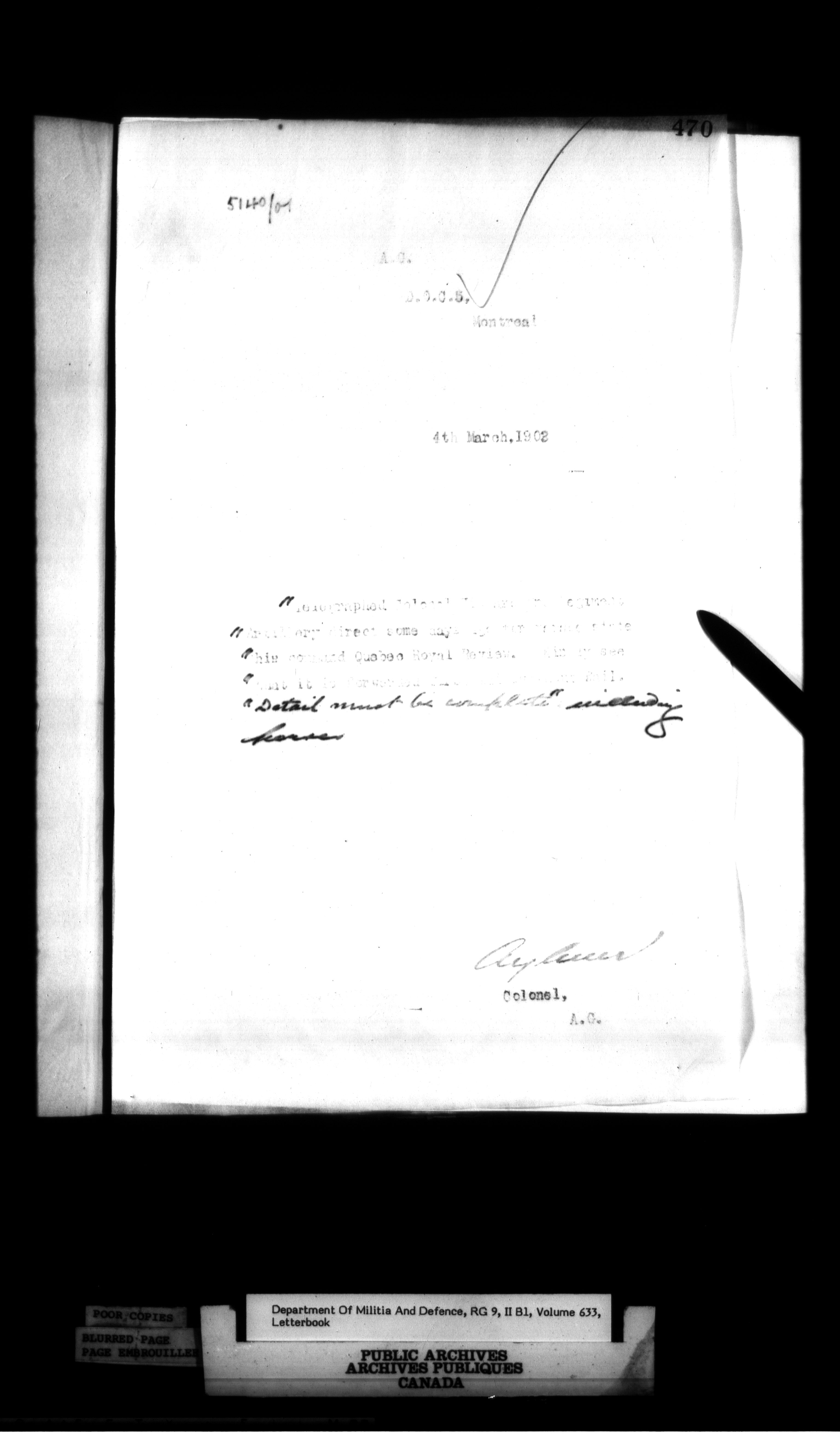 Correspondence of the General Officer Commanding (GOC) of the Canadian Militia and his predecessor, the Adjutant General - 365