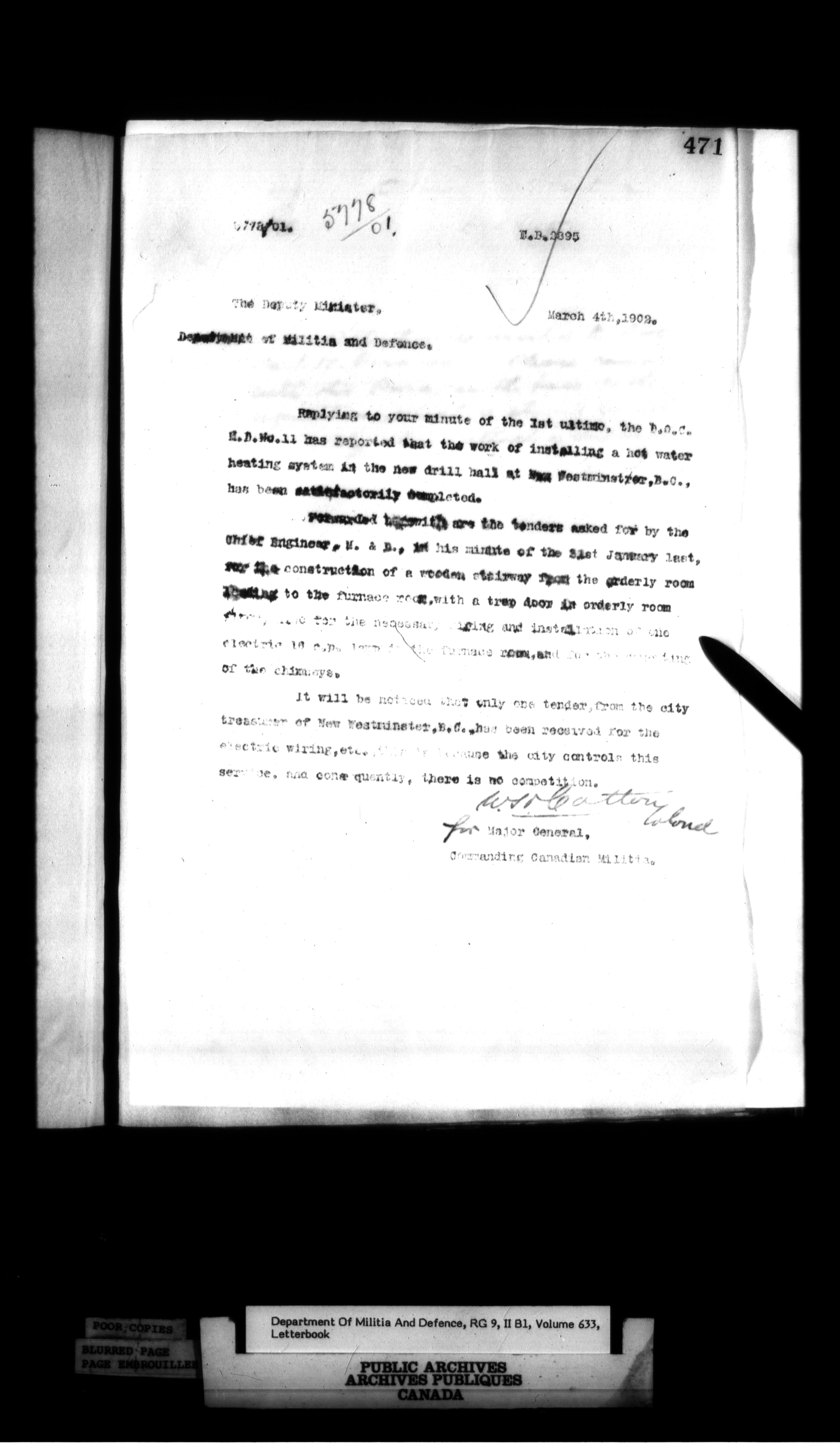 Correspondence of the General Officer Commanding (GOC) of the Canadian Militia and his predecessor, the Adjutant General - 365