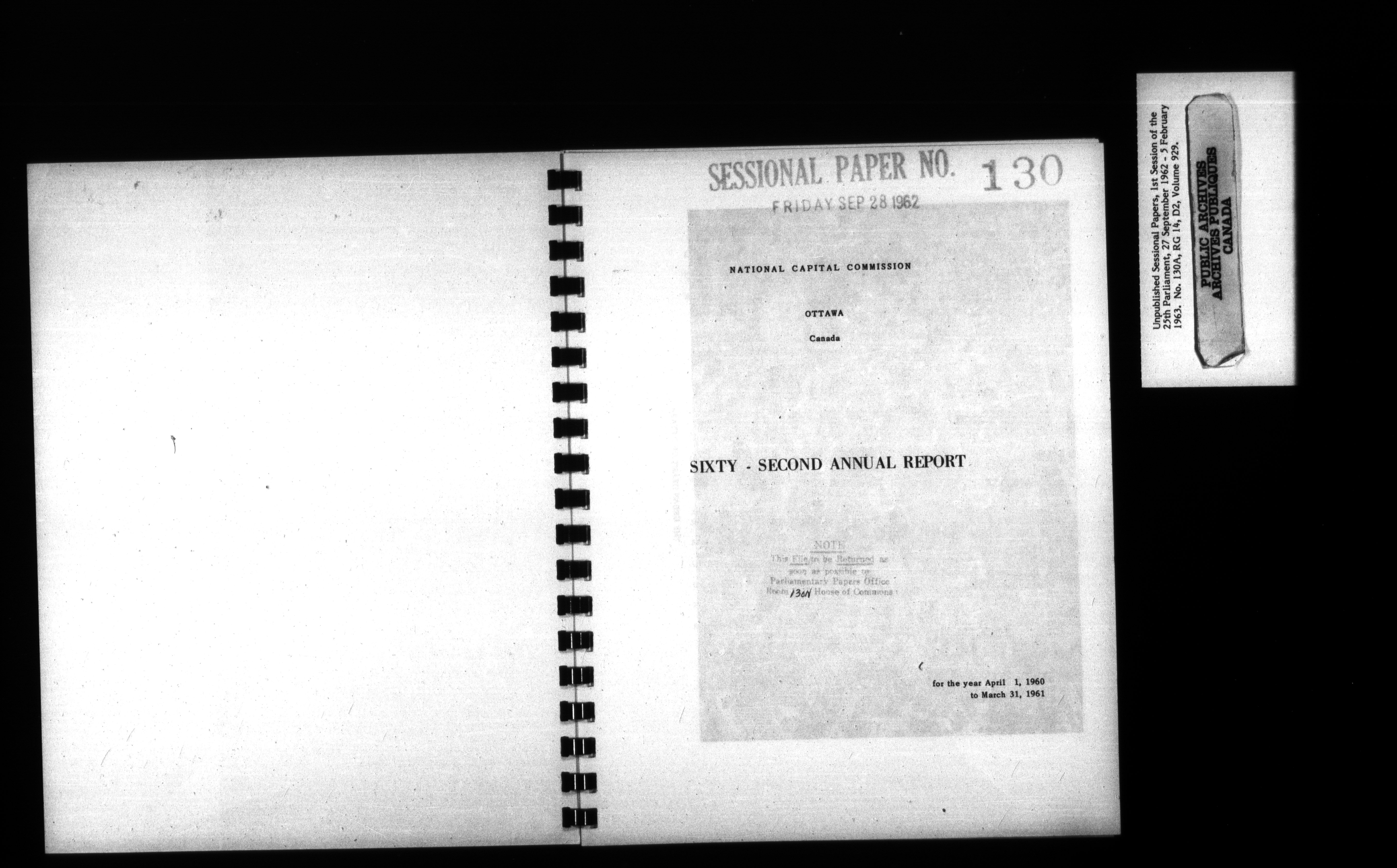 Unpublished sessional papers, 1st Session, 25th Parliament - 3652