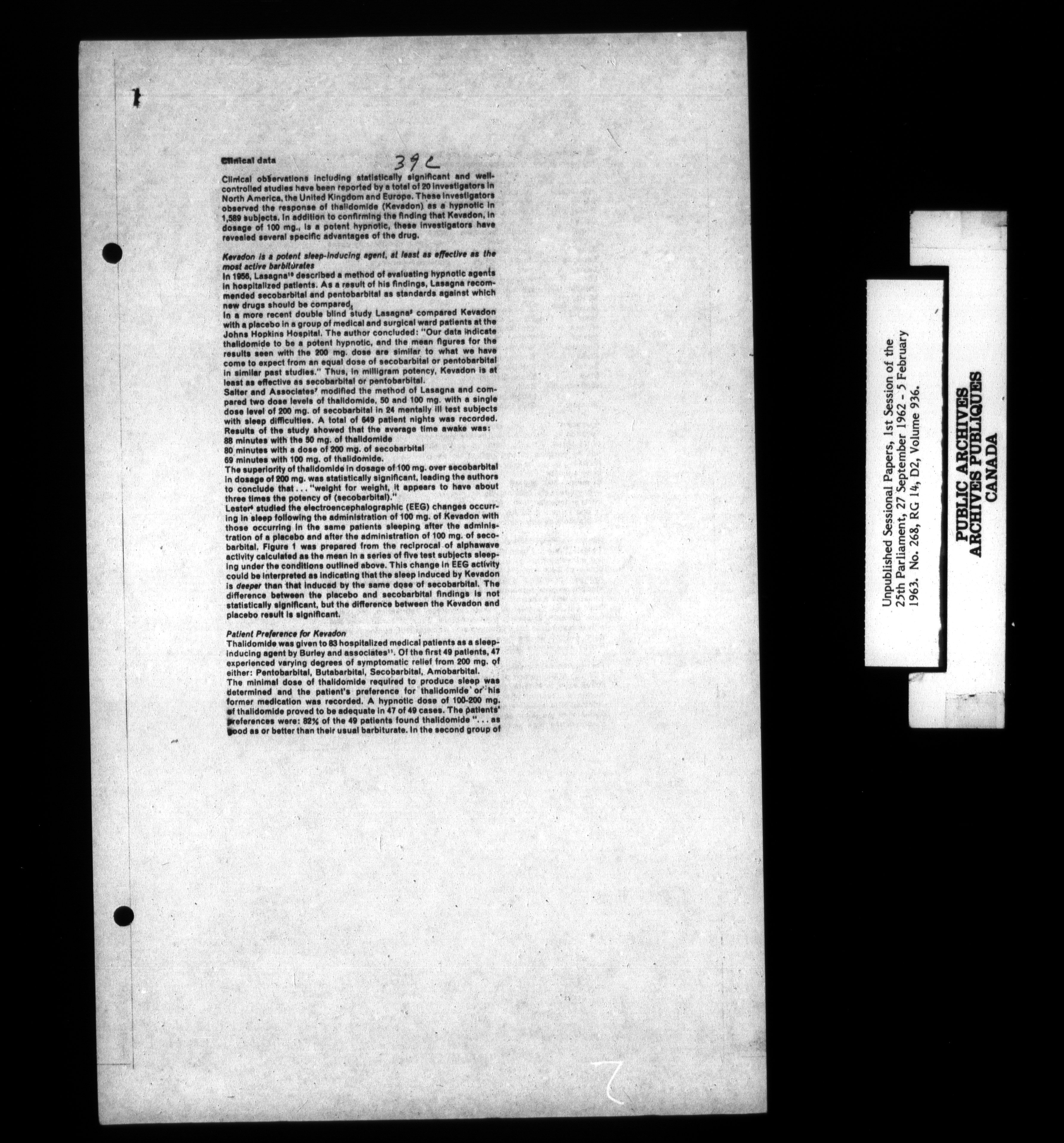 Unpublished sessional papers, 1st Session, 25th Parliament - 3654