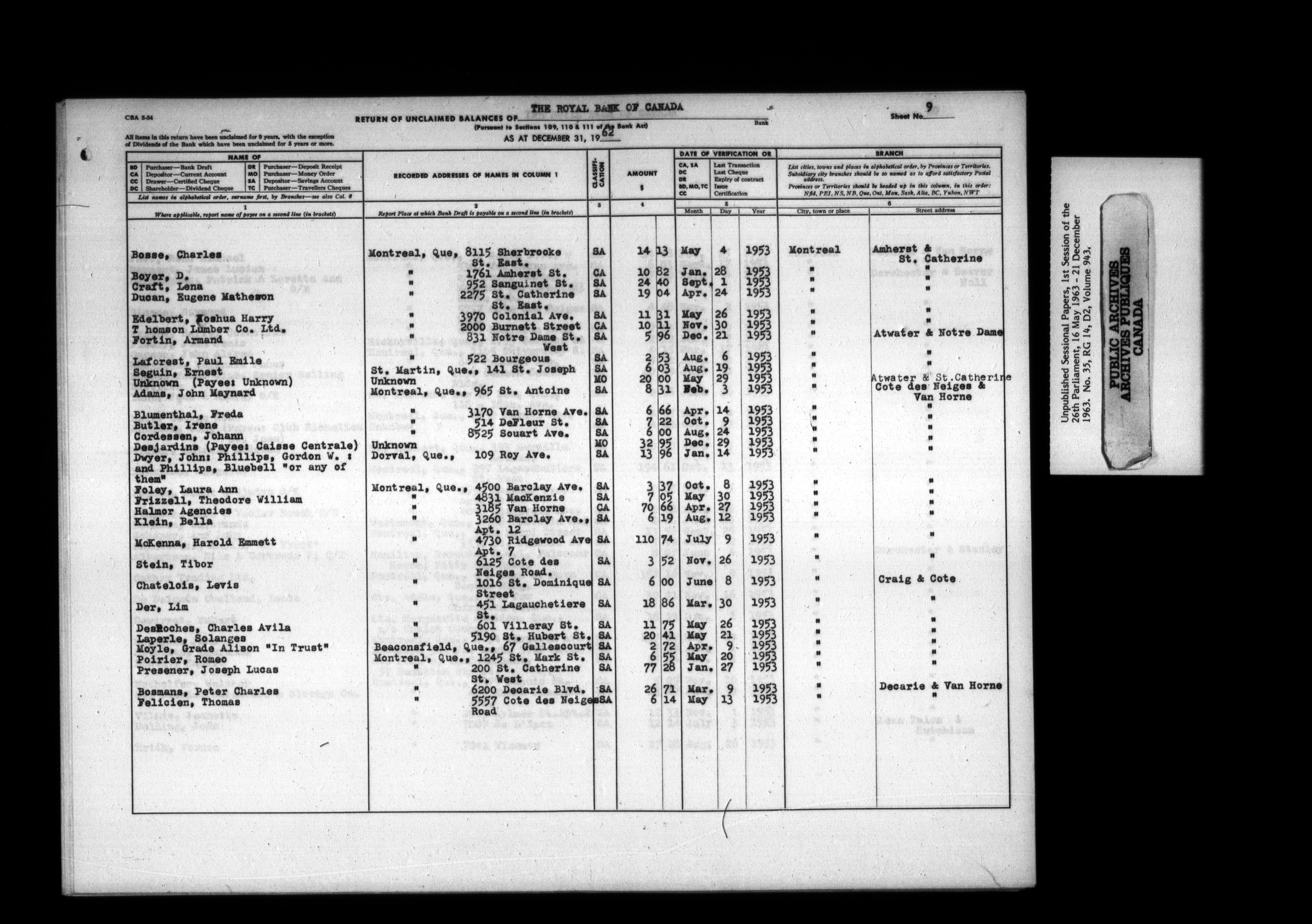 Unpublished sessional papers, 1st Session, 26th Parliament - 3656