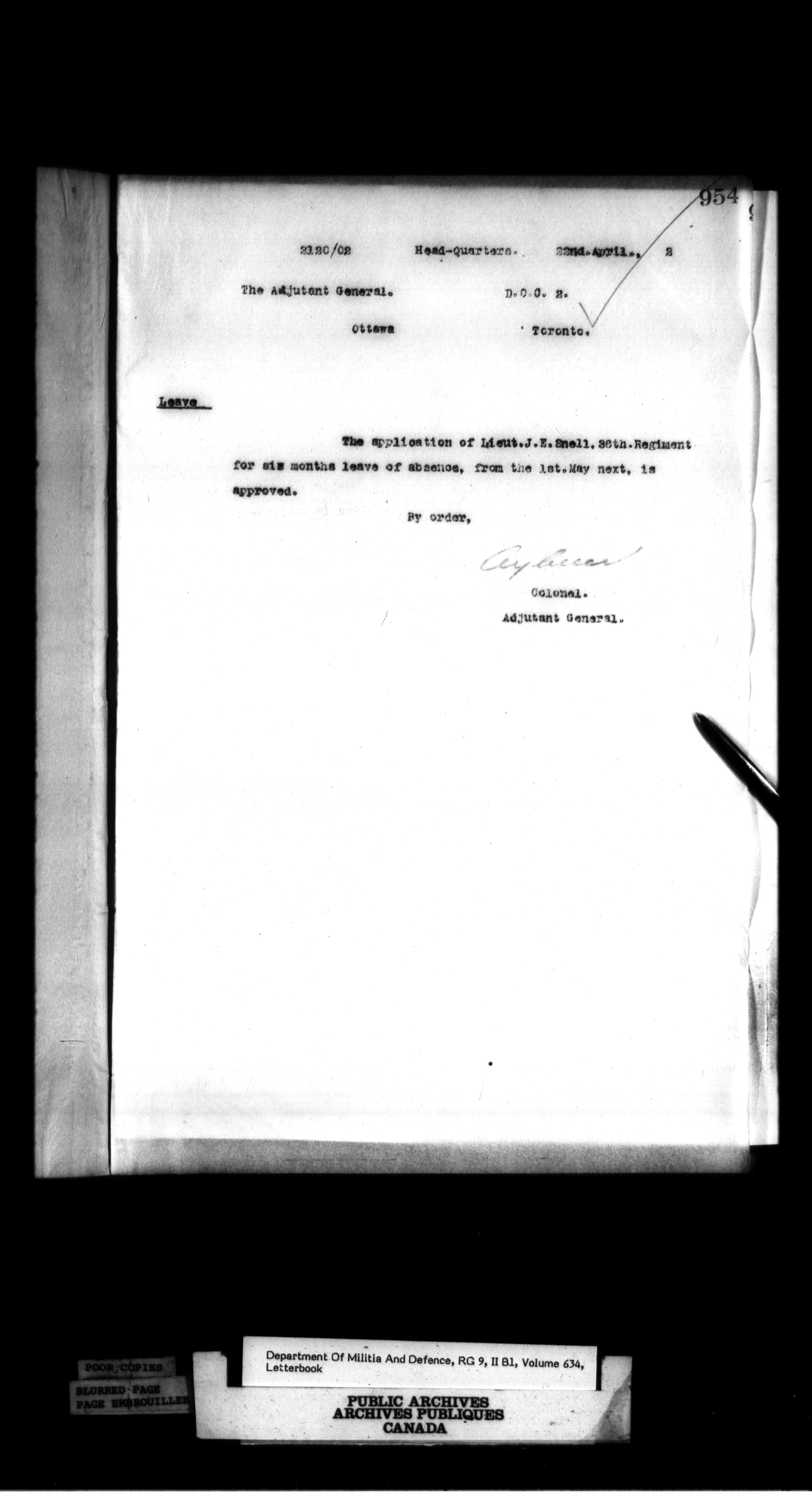 Correspondence of the General Officer Commanding (GOC) of the Canadian Militia and his predecessor, the Adjutant General - 366