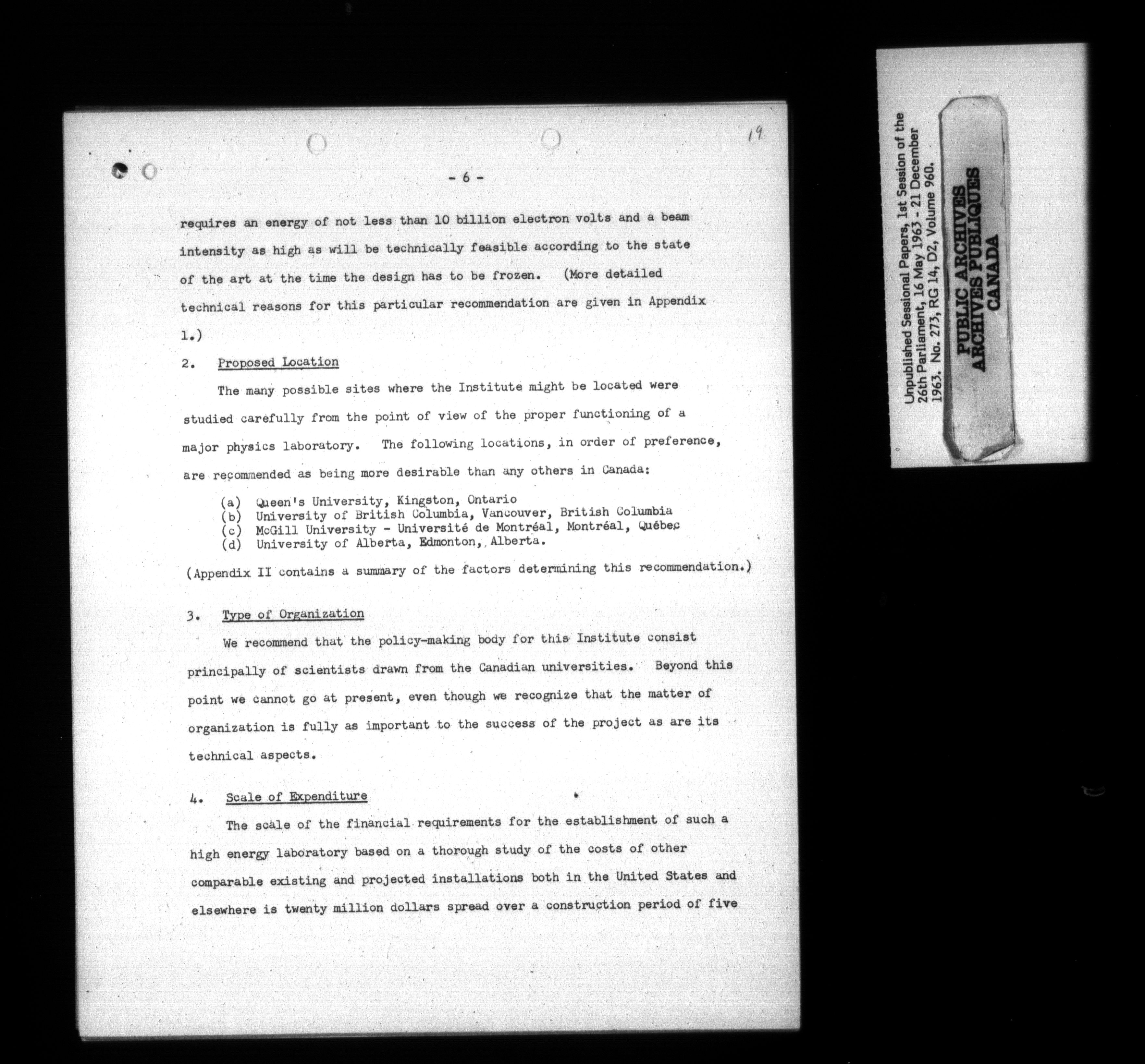 Unpublished sessional papers, 1st Session, 26th Parliament - 3662