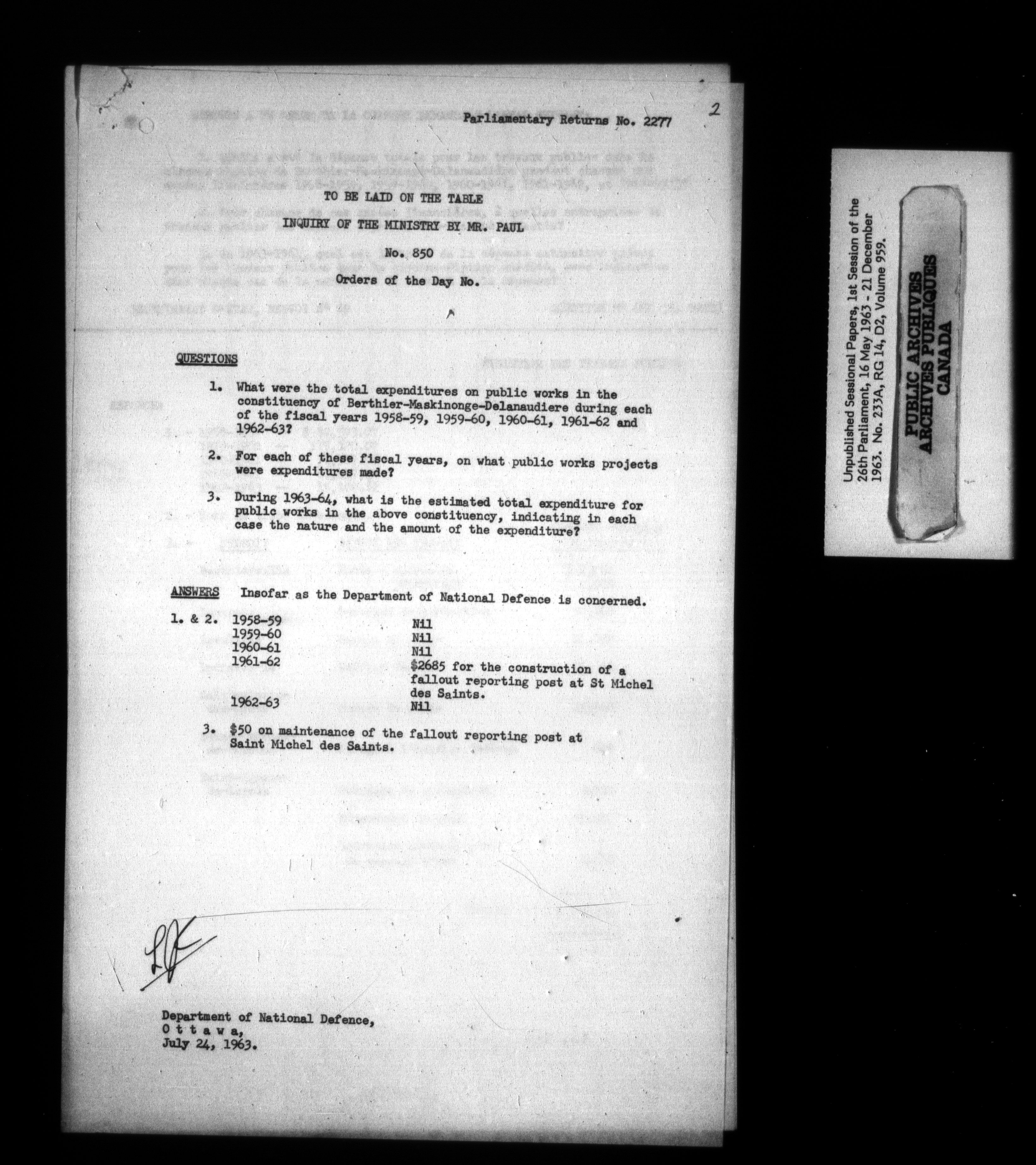Unpublished sessional papers, 1st Session, 26th Parliament - 3662