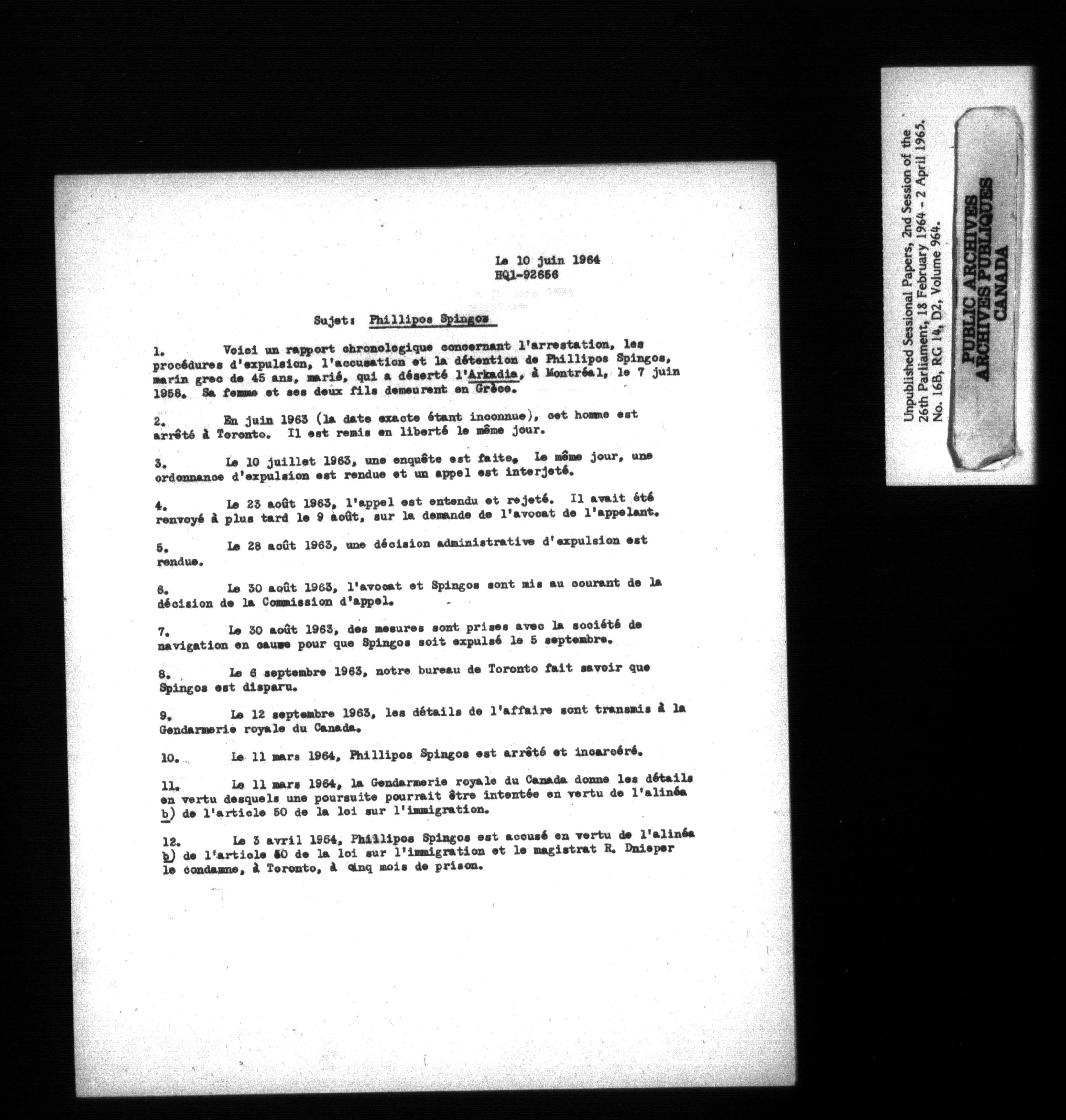 Unpublished sessional papers, 2nd Session, 26th Parliament - 3665