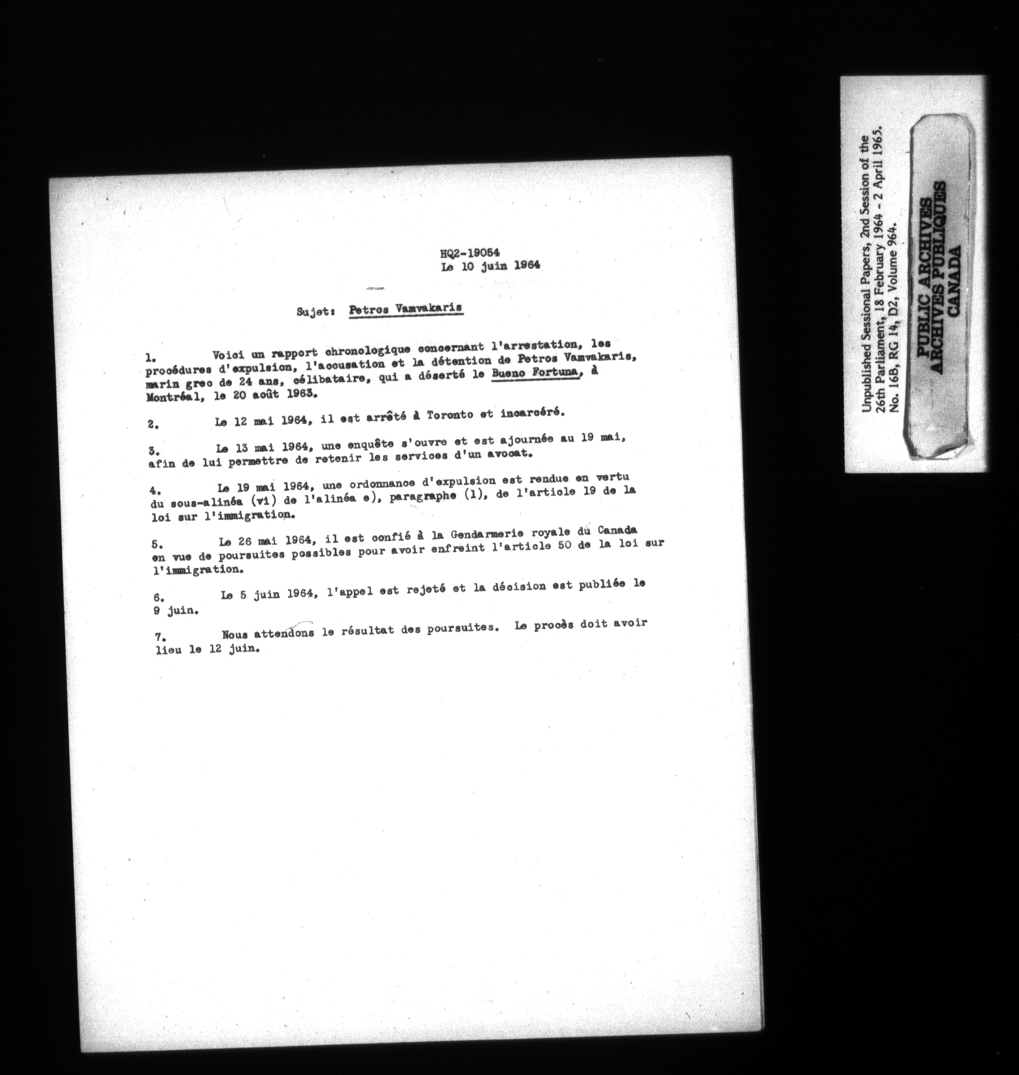 Unpublished sessional papers, 2nd Session, 26th Parliament - 3665