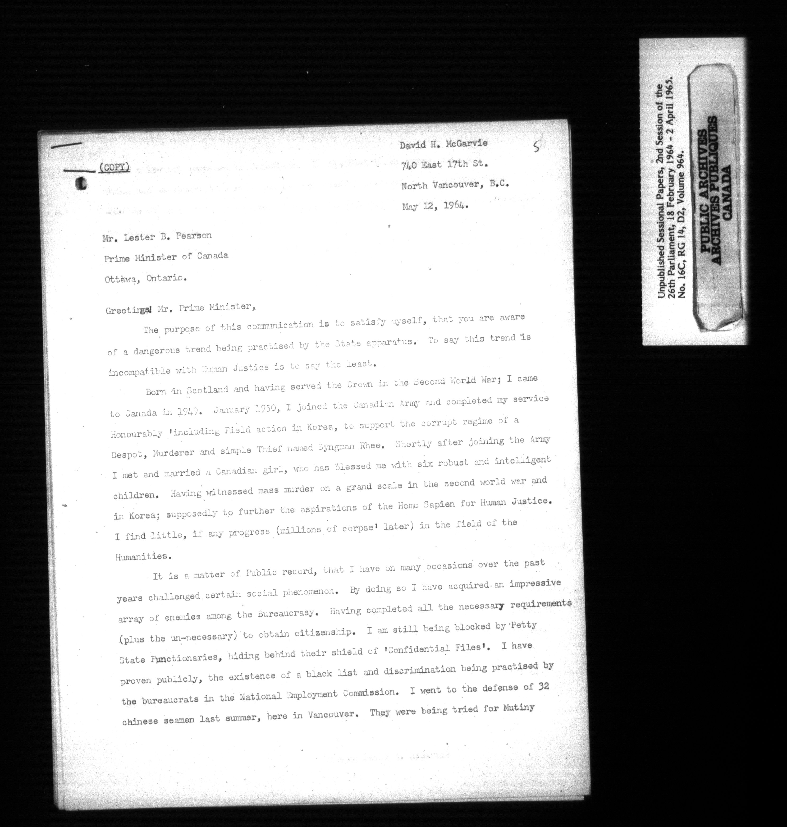 Unpublished sessional papers, 2nd Session, 26th Parliament - 3665