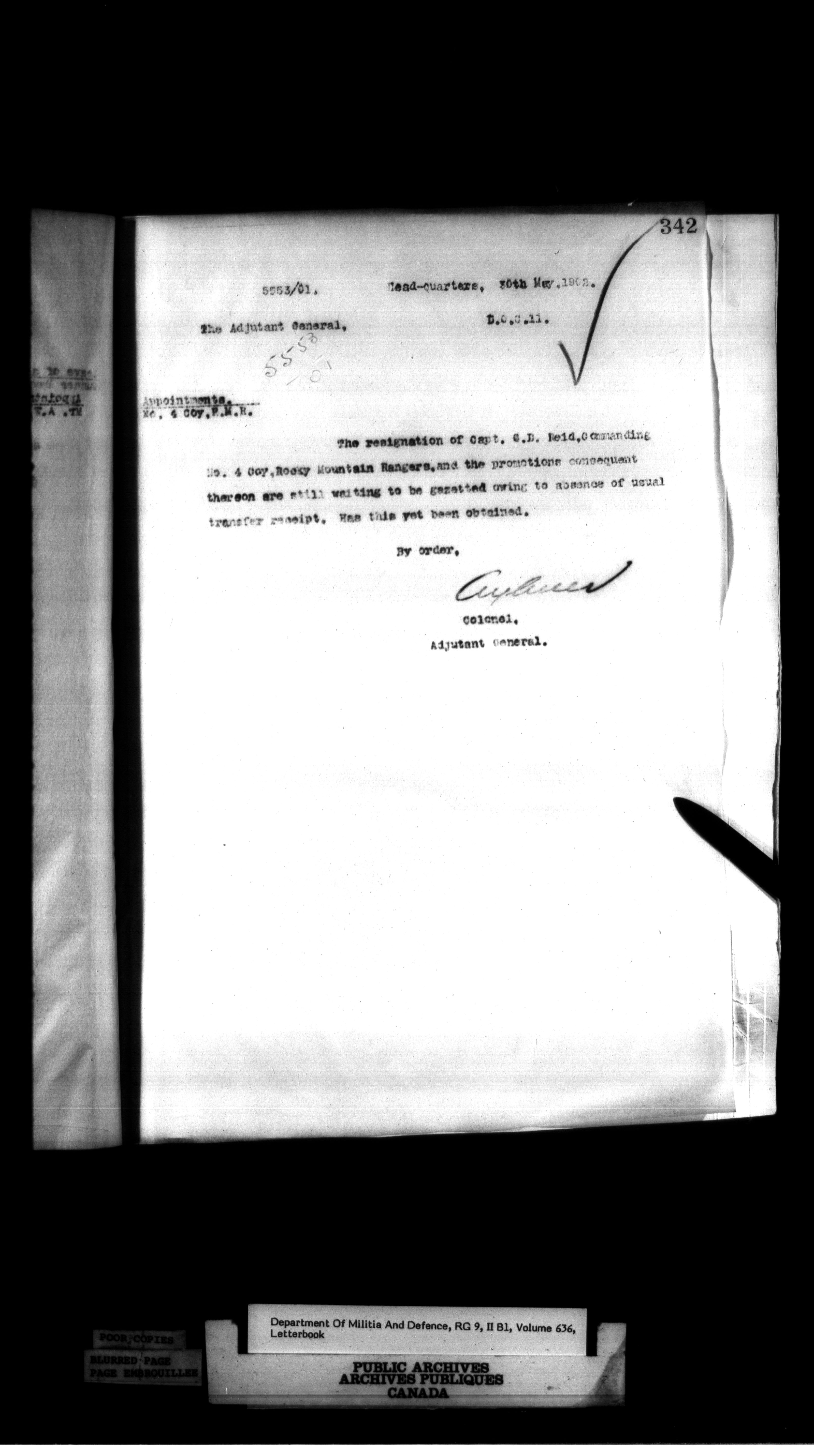 Correspondence of the General Officer Commanding (GOC) of the Canadian Militia and his predecessor, the Adjutant General - 367