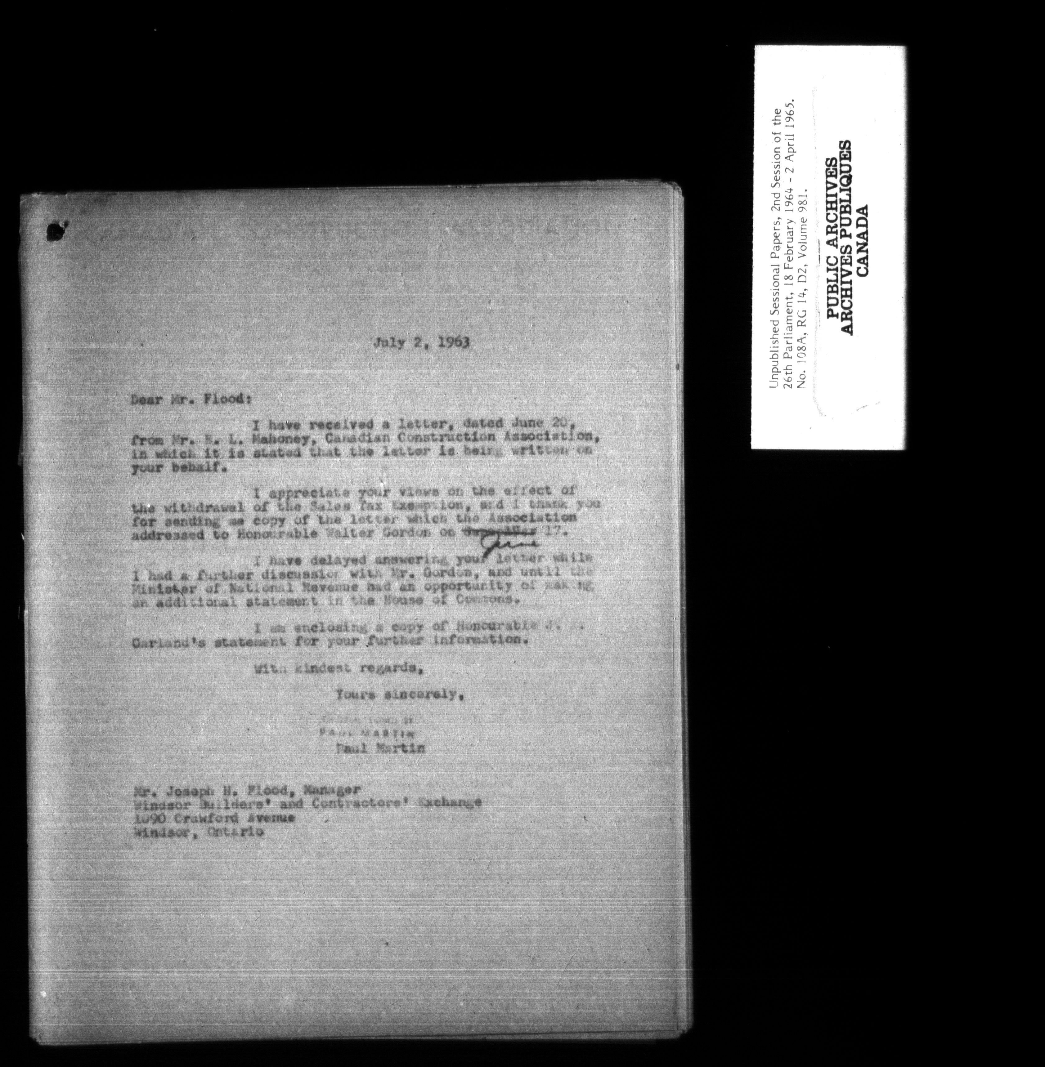 Unpublished sessional papers, 2nd Session, 26th Parliament - 3671