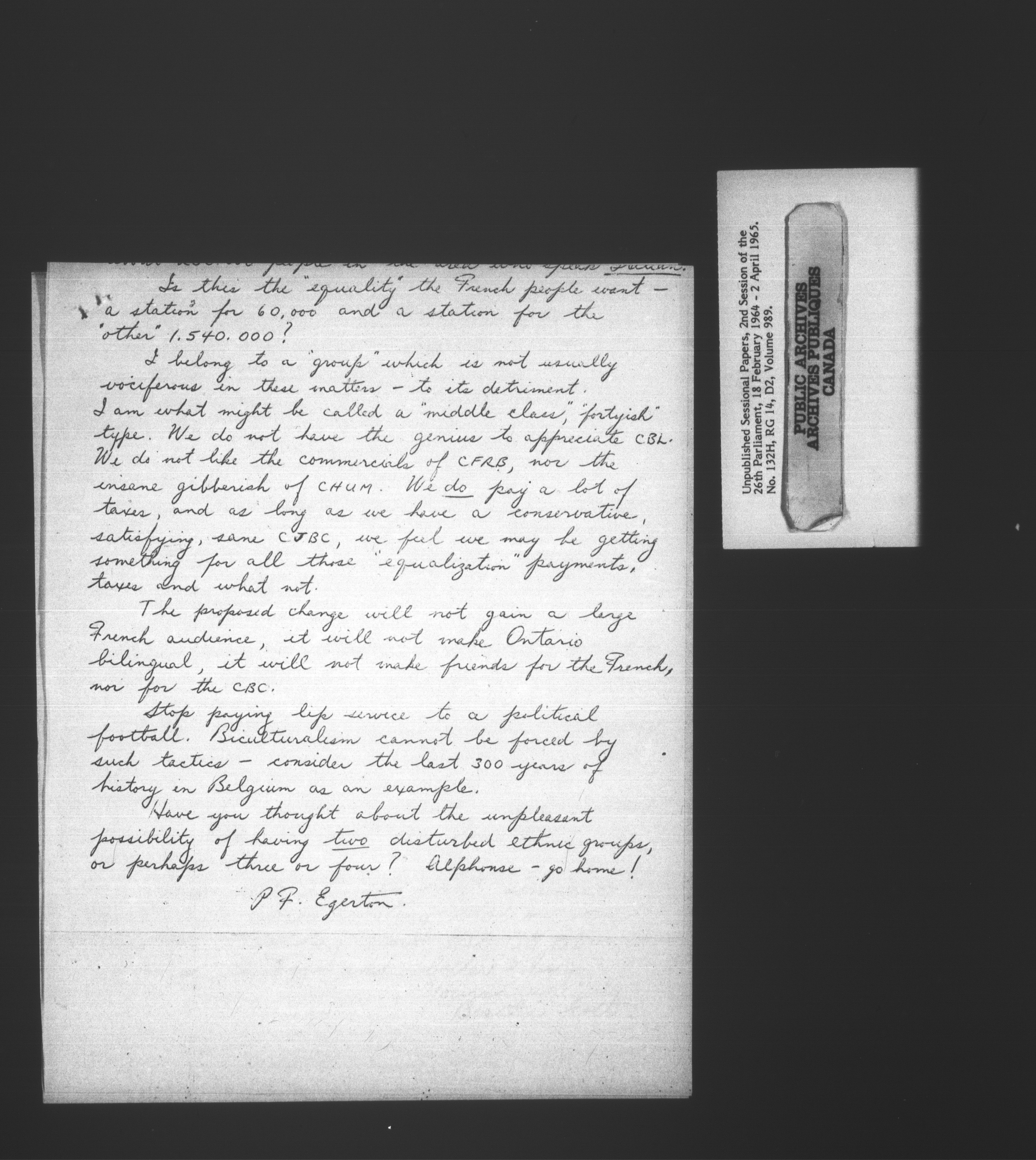 Unpublished sessional papers, 2nd Session, 26th Parliament - 3674
