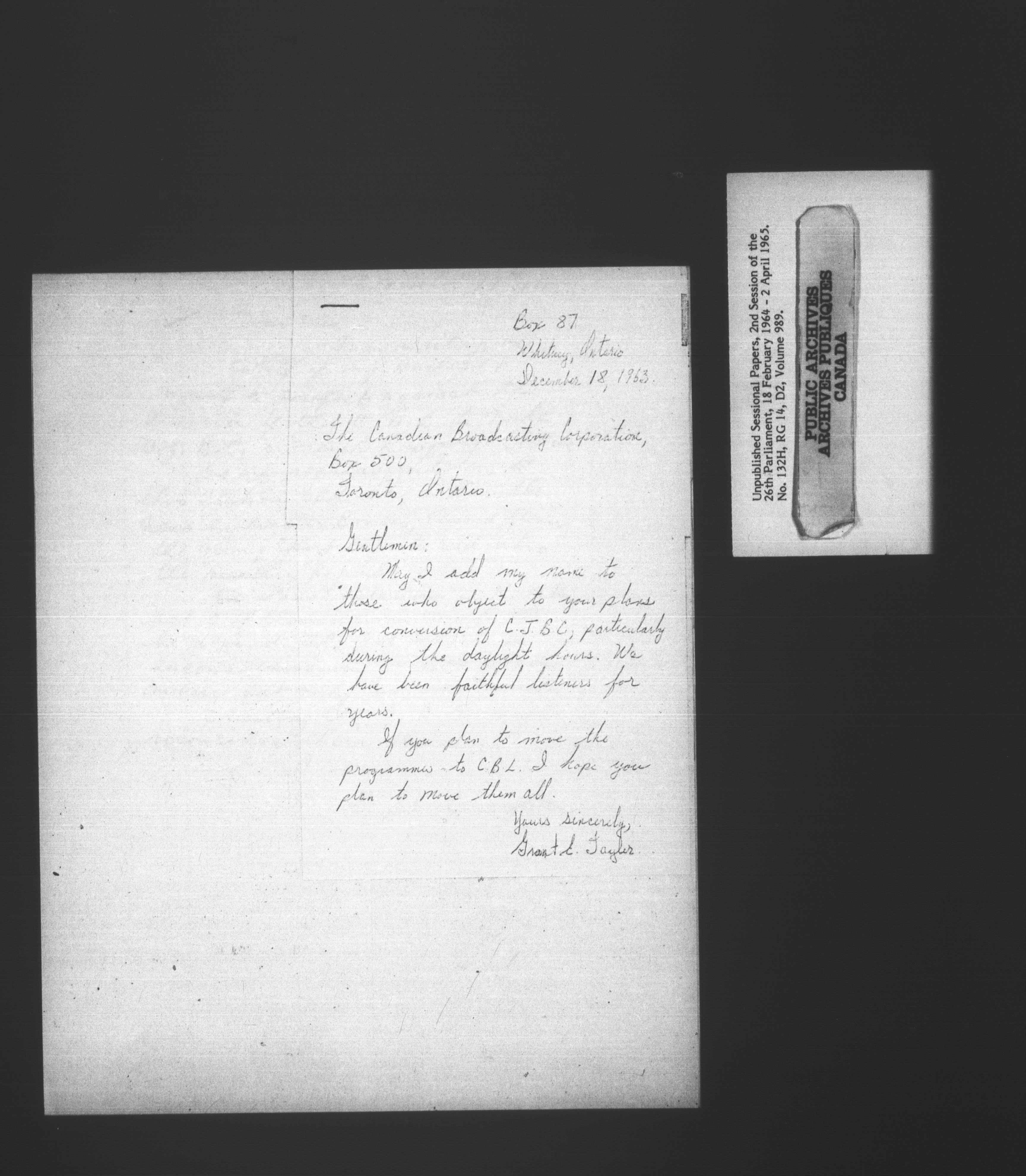 Unpublished sessional papers, 2nd Session, 26th Parliament - 3674