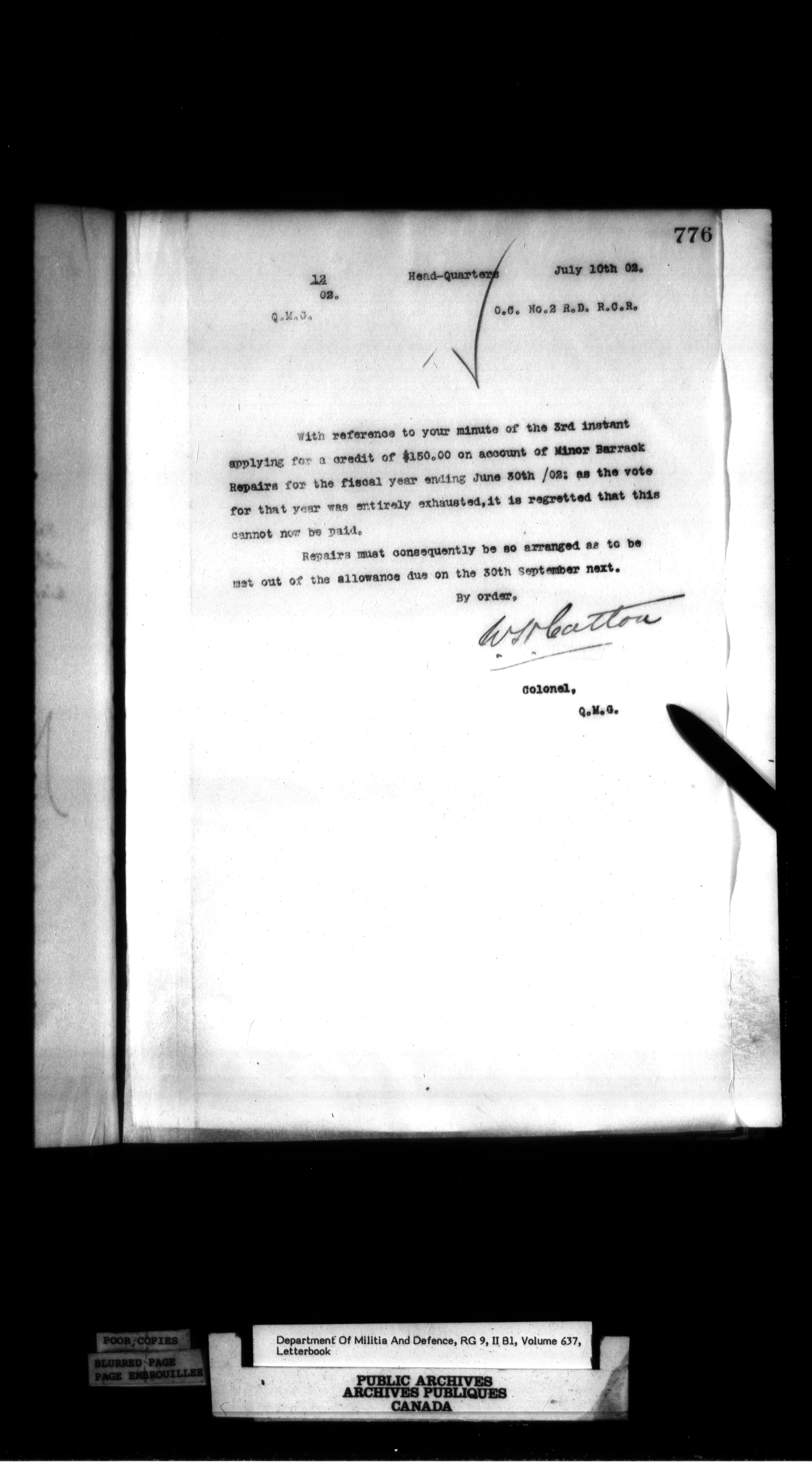 Correspondence of the General Officer Commanding (GOC) of the Canadian Militia and his predecessor, the Adjutant General - 368