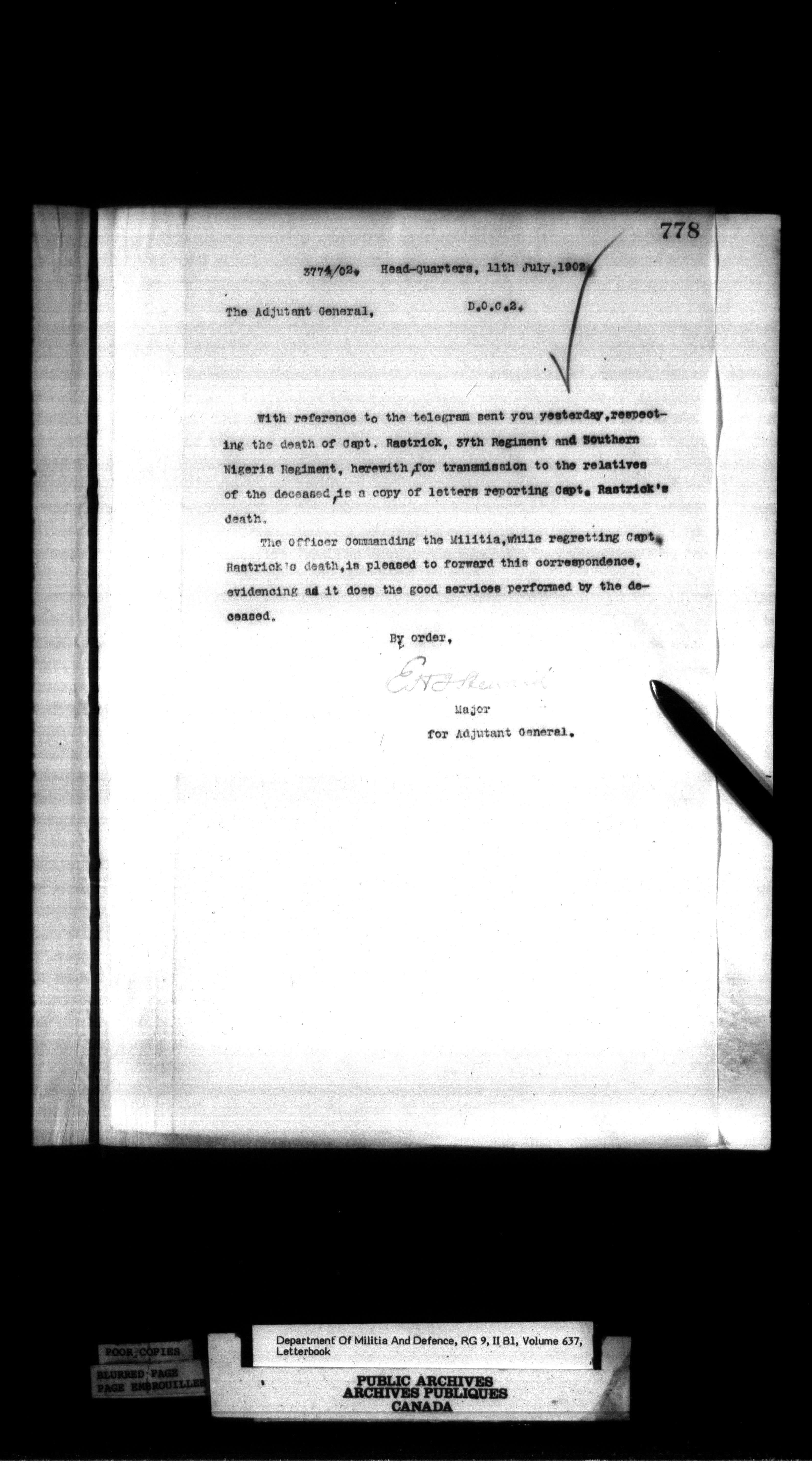 Correspondence of the General Officer Commanding (GOC) of the Canadian Militia and his predecessor, the Adjutant General - 368