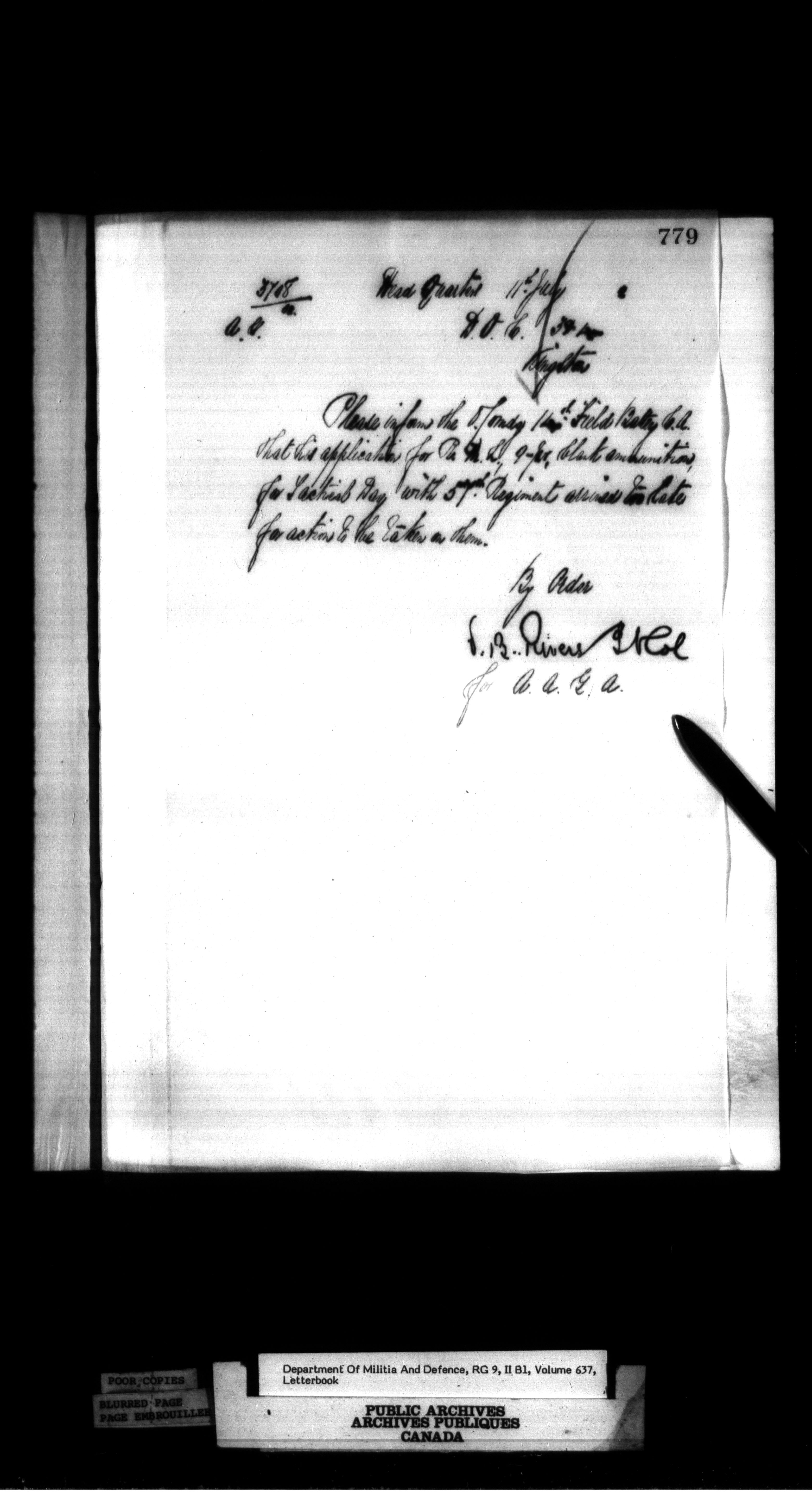Correspondence of the General Officer Commanding (GOC) of the Canadian Militia and his predecessor, the Adjutant General - 368