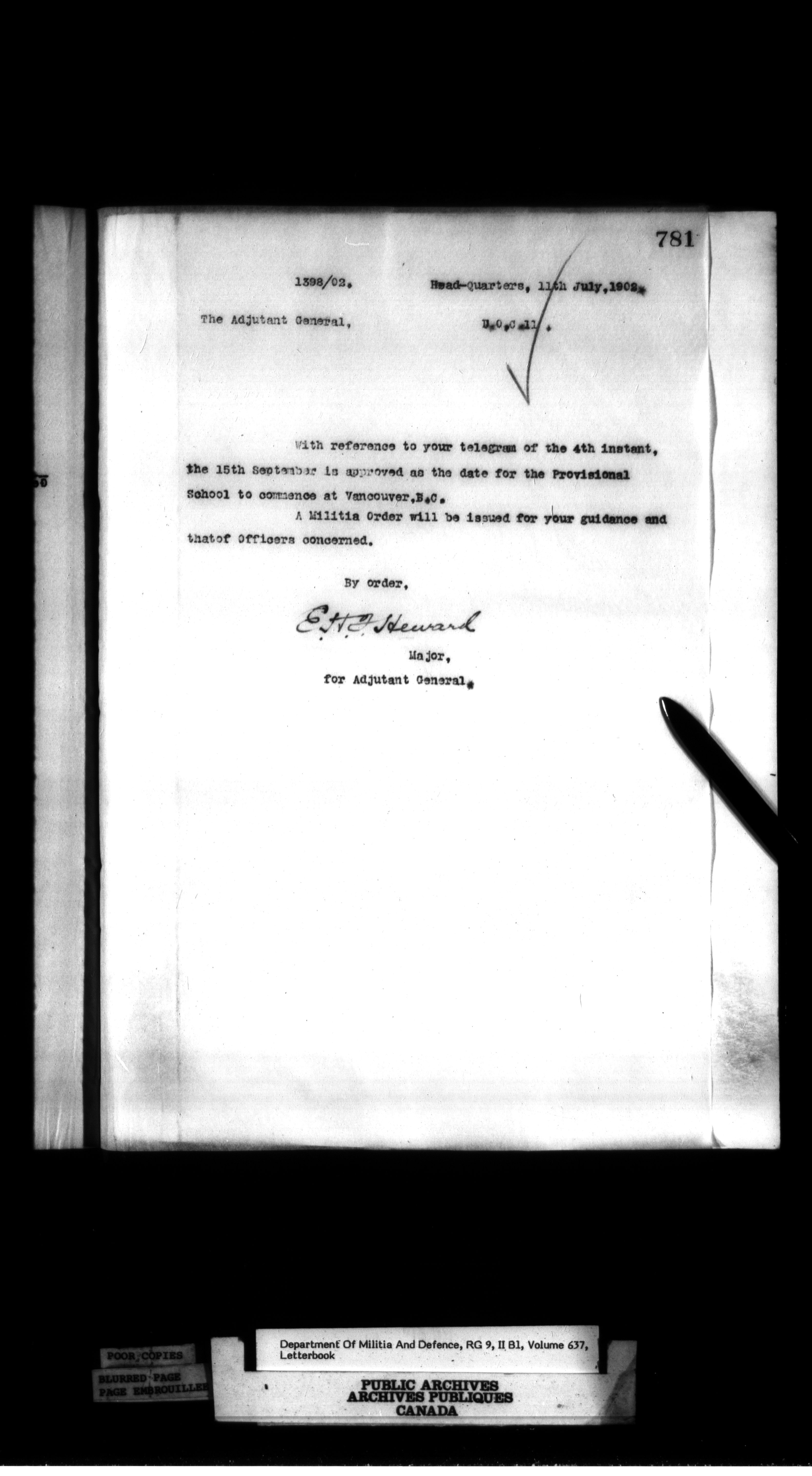 Correspondence of the General Officer Commanding (GOC) of the Canadian Militia and his predecessor, the Adjutant General - 368